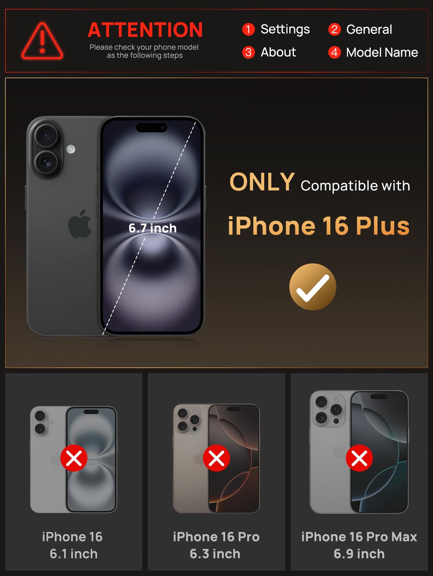 Q: Is the Vihibii case compatible with other iPhone models?A: No, the Vihibii for iPhone 16 Plus Case is specifically designed for the iPhone 16 Plus 6.7" model released in 2024. It is important to check your phone model for compatibility before purchasing.