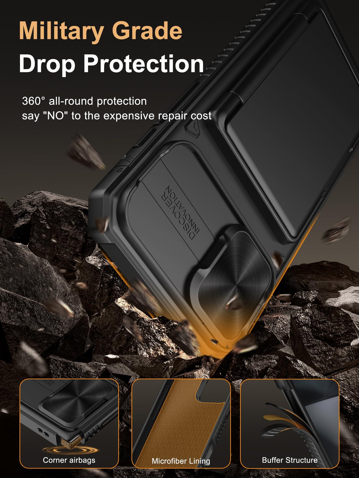 Q: How does the sliding camera lens protection work?A: The Vihibii case includes a sliding camera lens protection cover that is 2mm thick. It allows you to easily slide the cover over the camera lens when not in use, protecting it from scratches and potential damage.