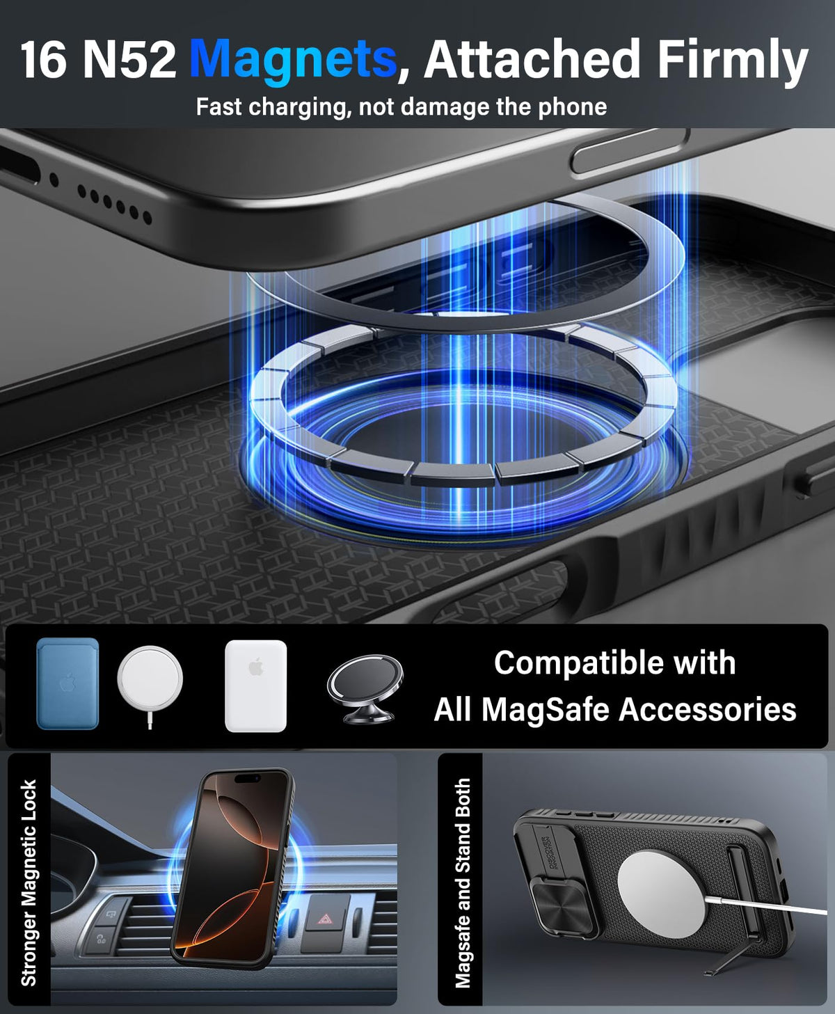 Vihibii For Iphone 16 Pro Max Magnetic Case With Kickstand, Built In Hd Screen Protector [2 Pack] & Slide Camera Cover, [Compati