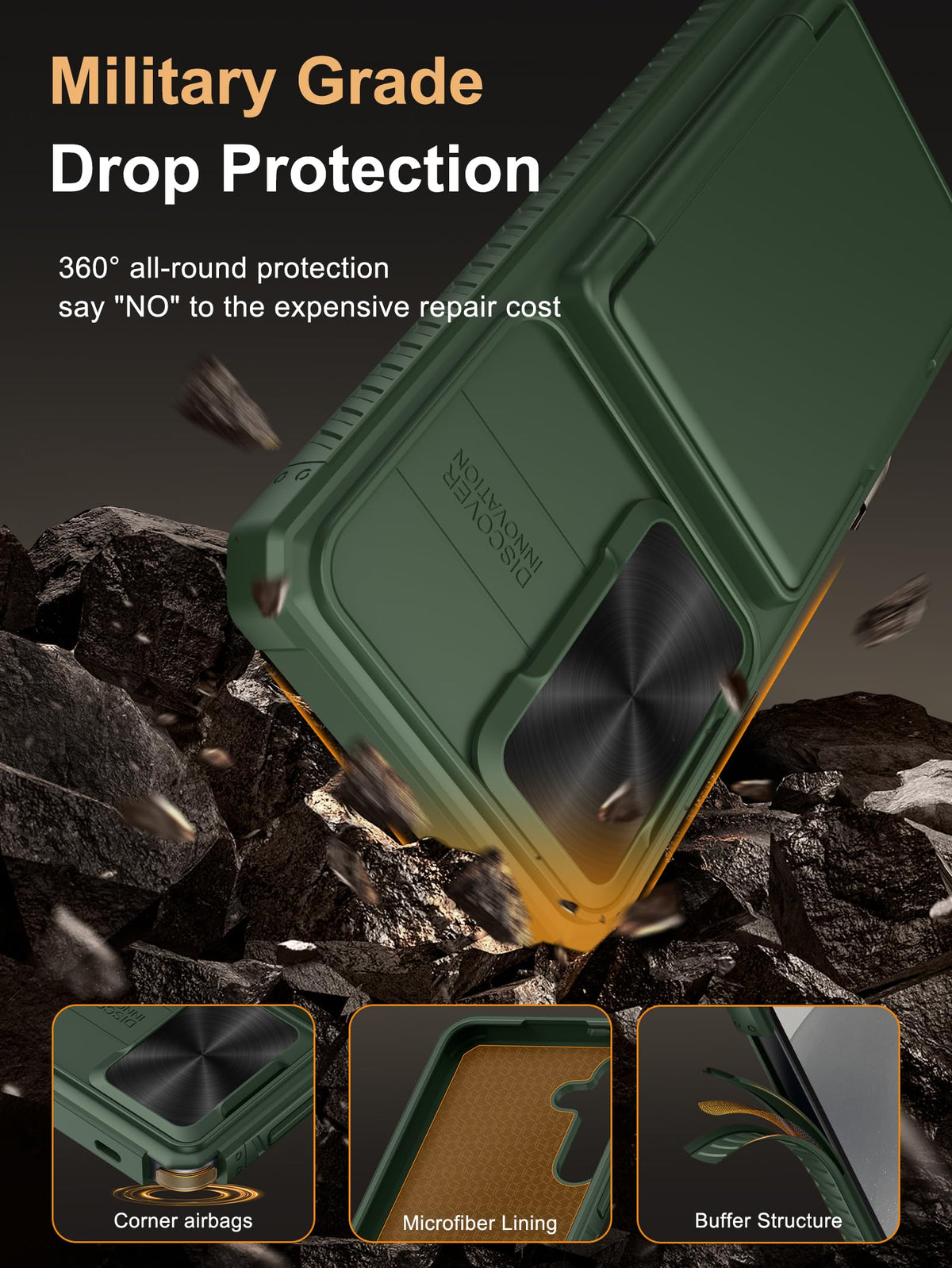 Vihibii For Samsung Galaxy S24 Plus Case With Card Holder (4 Cards) & Slide Lens Cover & Kickstand & Raised Edges Protect Screen