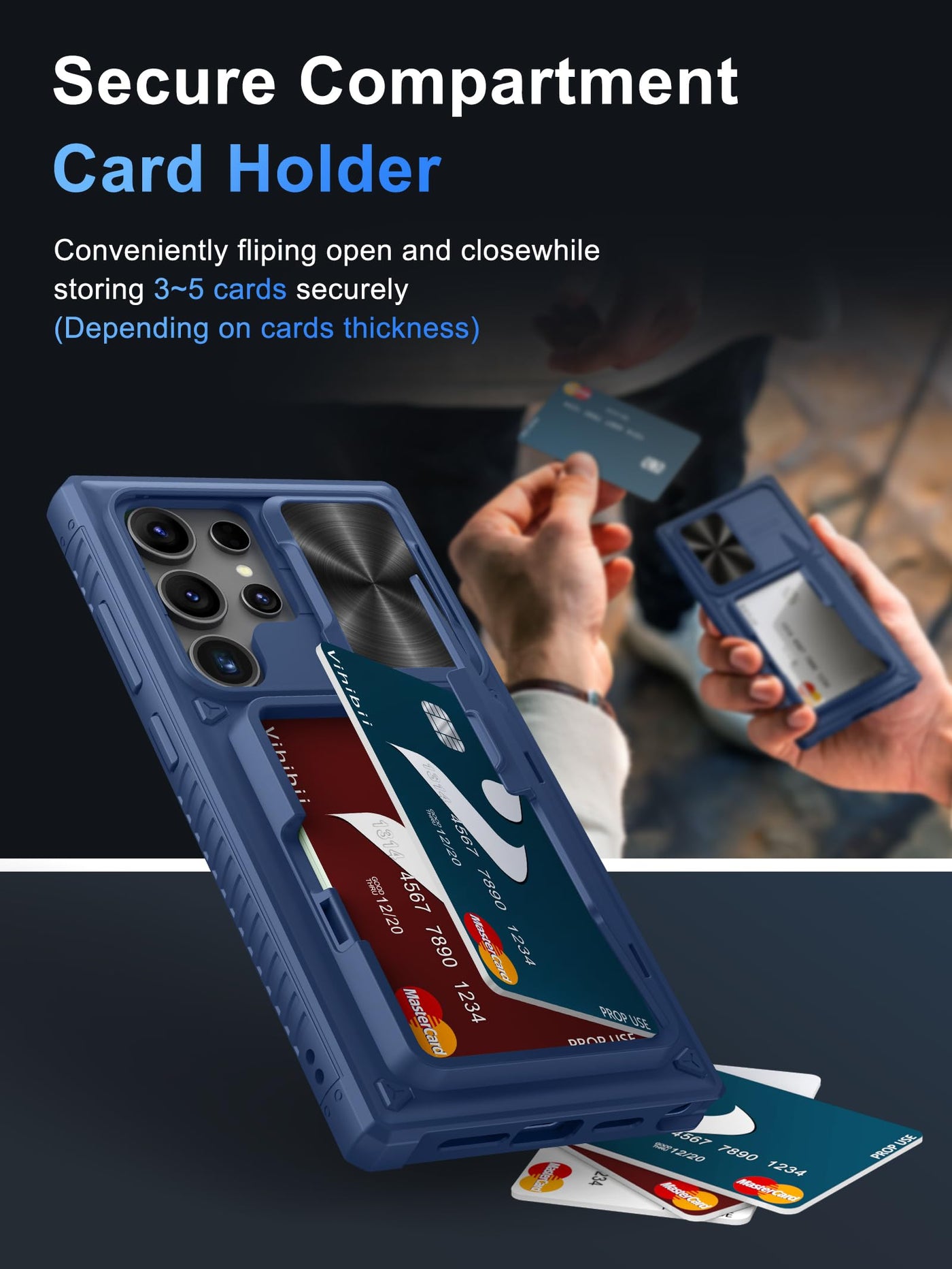 Vihibii For Samsung Galaxy S24 Ultra Wallet Case With Card Holder (4 Cards) & Slide Camera Lens Protective Cover & Kickstand, He