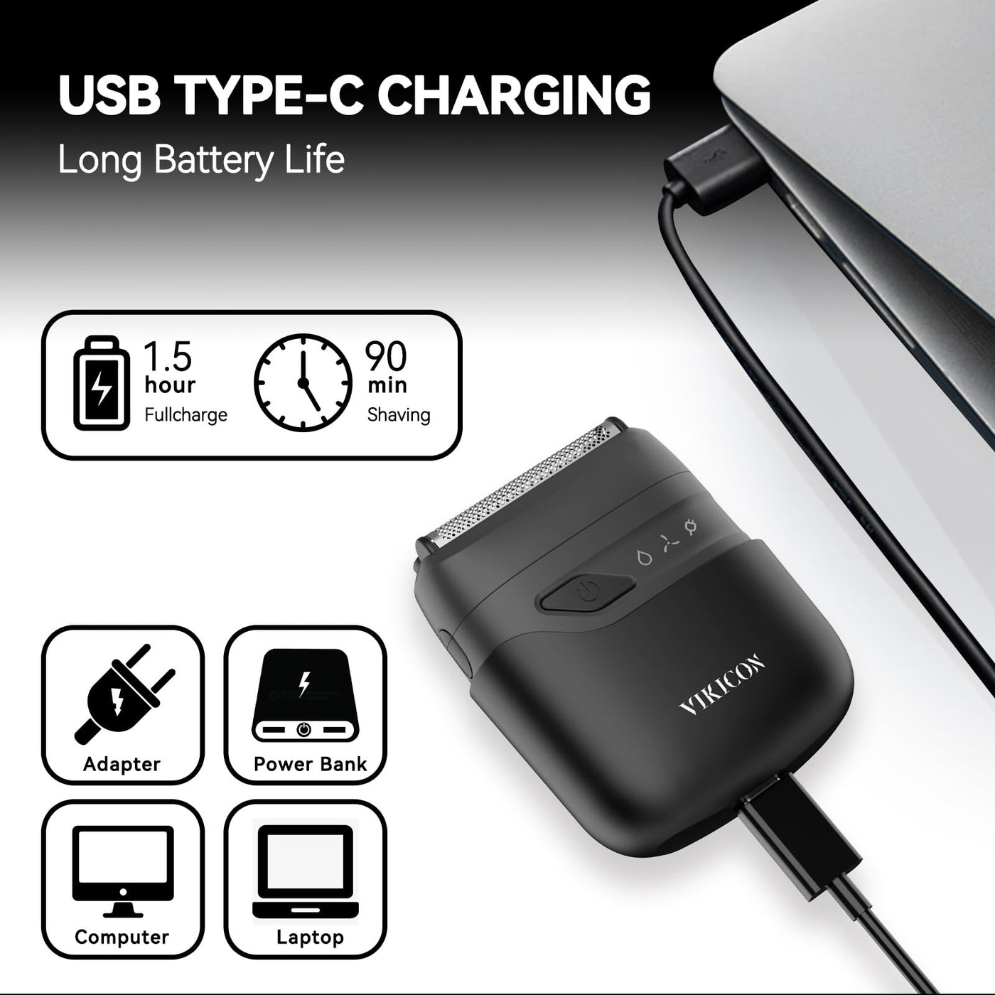 Complete Shaving Performance: Vikicon On-The-Go Shaver For Men Adopts Floating Double Blade Design, Suitable For Face, Chin, Neck Beard, Head, Facial Hair, Will Not Cut The Skin, And Will Not Irritate The Skin. Foil Blade & Comb Blade Hypoallergenic Dual Nickel Foils. It'S Innovative Float System Allows The Cutting Bars To Move Independently, Adapting To Facial Contours For A Precise Shave | Mini Electric Shavers For Travel: Thanks To Its Compact Design, Its Size Is 2.95*2.36*1.28 In, You Can Even Be Put It Into A Trouser Pocket, Making The Small Men'S Electric Shaver Very Suitable For Business Men To Carry On Business Trips Or As A Beard Cleaning Companion On The Go. This Mini Electric Razor Can Provide You With A Wonderful Shaving Experience At All Times. | High-Speed Motor And Long-Lasting Lithium Battery: This Cordless Electric Shavers For Men Boasts A Robust 9500 Rpm Motor, And A High-Quality 700Mah Lithium Battery, Usb Type-C Charging, Fully Charged, Can Work Continuously For 90 Minutes. Enjoy Powerful, Smooth, And Long-Lasting Performance With Every Shave | Easy To Clean: Our Showproof Face Shaver For Men Is Fully Ipx7 Waterproof. Enjoy A Comfortable Dry Shave Or A Refreshing Wet Shave With Shaving Foam. The Detachable Cutter Head Design Allows You To Remove The Cutter Head Directly After Shaving And Clean It With Running Water, A Cleaner Shaving Experience. | How To Use: You Can Start Shaving With One Button. If You Have A Short Beard, You Can Choose The Honeycomb Blade-Like Foil Blade For Daily Shaving; If Your Beard Is Slightly Longer, You Need To Use The Comb-Like Comb Blade To Trim The Beard Length First, And Then Switch To The Foil Blade To Thoroughly Clean The Beard | Unique Gifts For Men: Surprise Your Husband Or Any Special Man In Your Life With A High-Quality Facial Hair Shaver Gift On His Birthday, Father'S Day, Christmas, Or Valentine'S Day