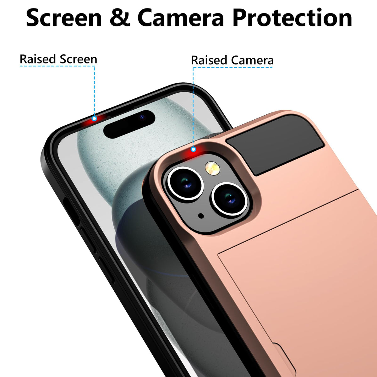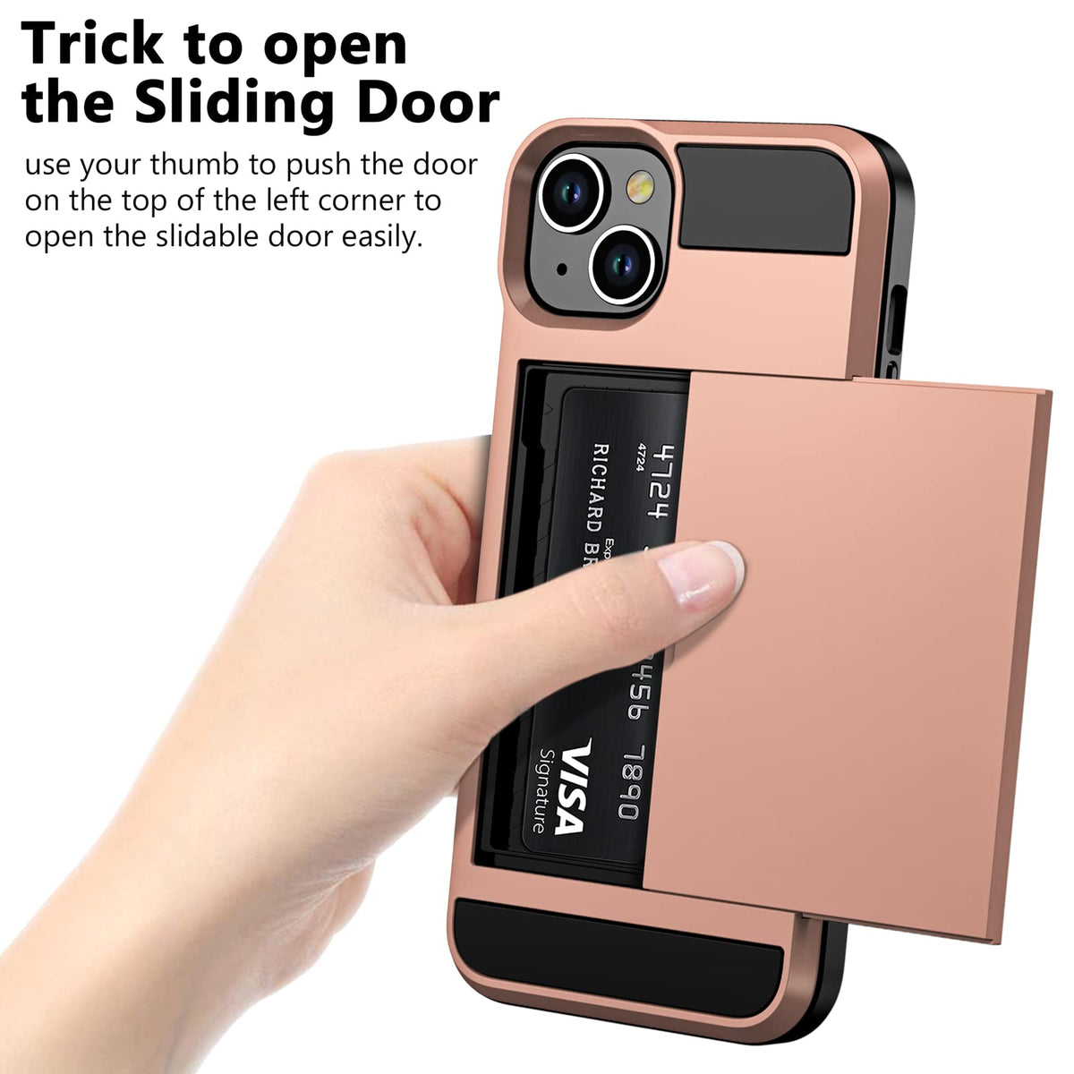 Vofolen Case Compatible With Iphone 15 With Card Holder, Dual Layer Shockproof Wallet Phone Case, Hidden Card Slot Sliding Prote