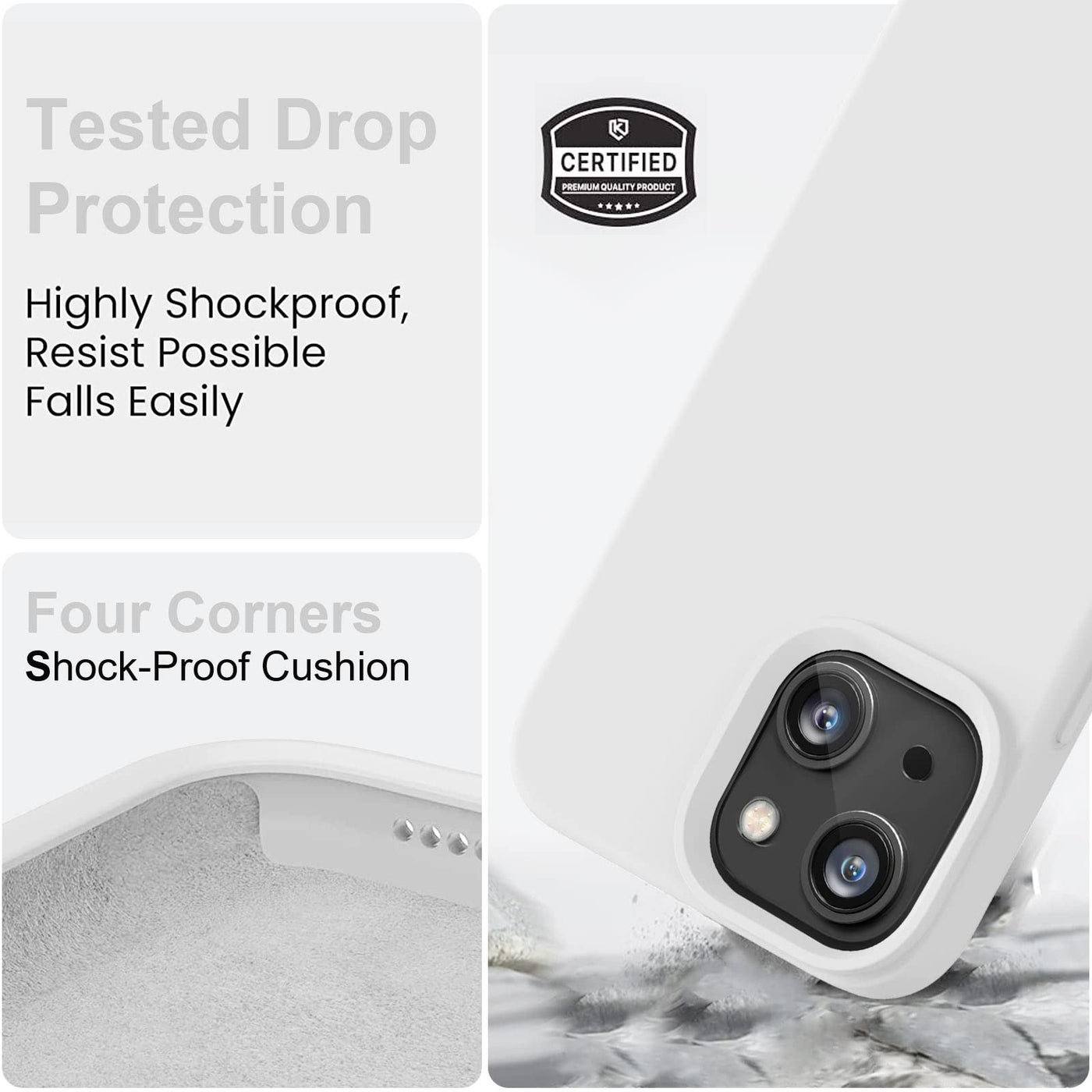 Q: How does this case protect my iPhone 14?A: This case provides 360° full body protection with a microfiber lining that prevents scratches, and reinforced edges that are 1.3mm and 1.5mm thicker for enhanced shock absorption, passing rigorous drop tests.