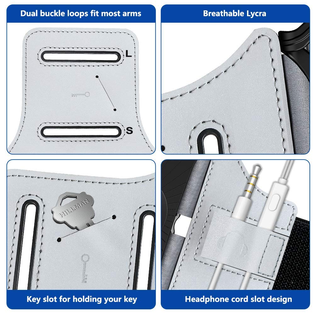 Cell Phone Armband For Workout Biking Walking For Iphone X 8 Plus 8 7 Plus 7 6 Plus 6 6S, Galaxy S8 S7 S5, Google Pixel, Adjustable Reflective Band Running Armand With Key Holder(Silver)