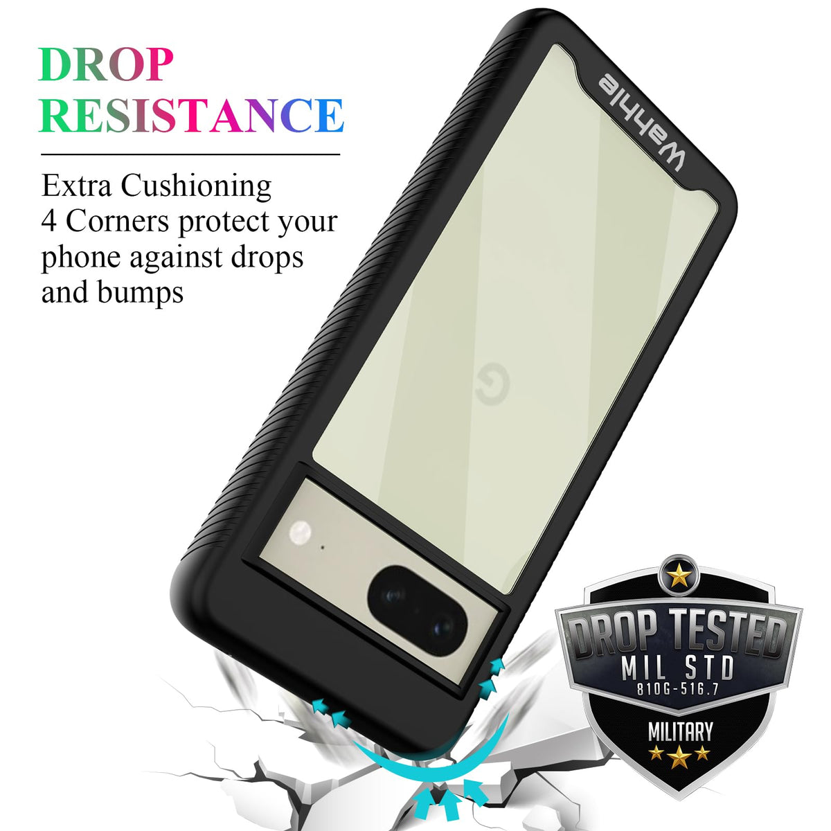 Q: Does the case provide good protection against drops?A: Yes, the Wahhle case offers military-grade protection certified by MIL-STD 810G-516.6, which means it effectively protects your Google Pixel 7 against drops and impacts.