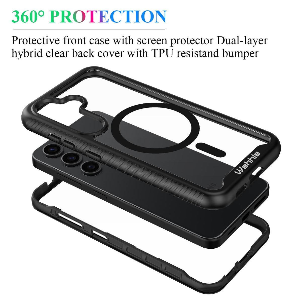 Wahhle Compatible With Samsung Galaxy S24 Case, Magnetic Wireless Charging Built In Screen Protector Full Body Shockproof Slim F
