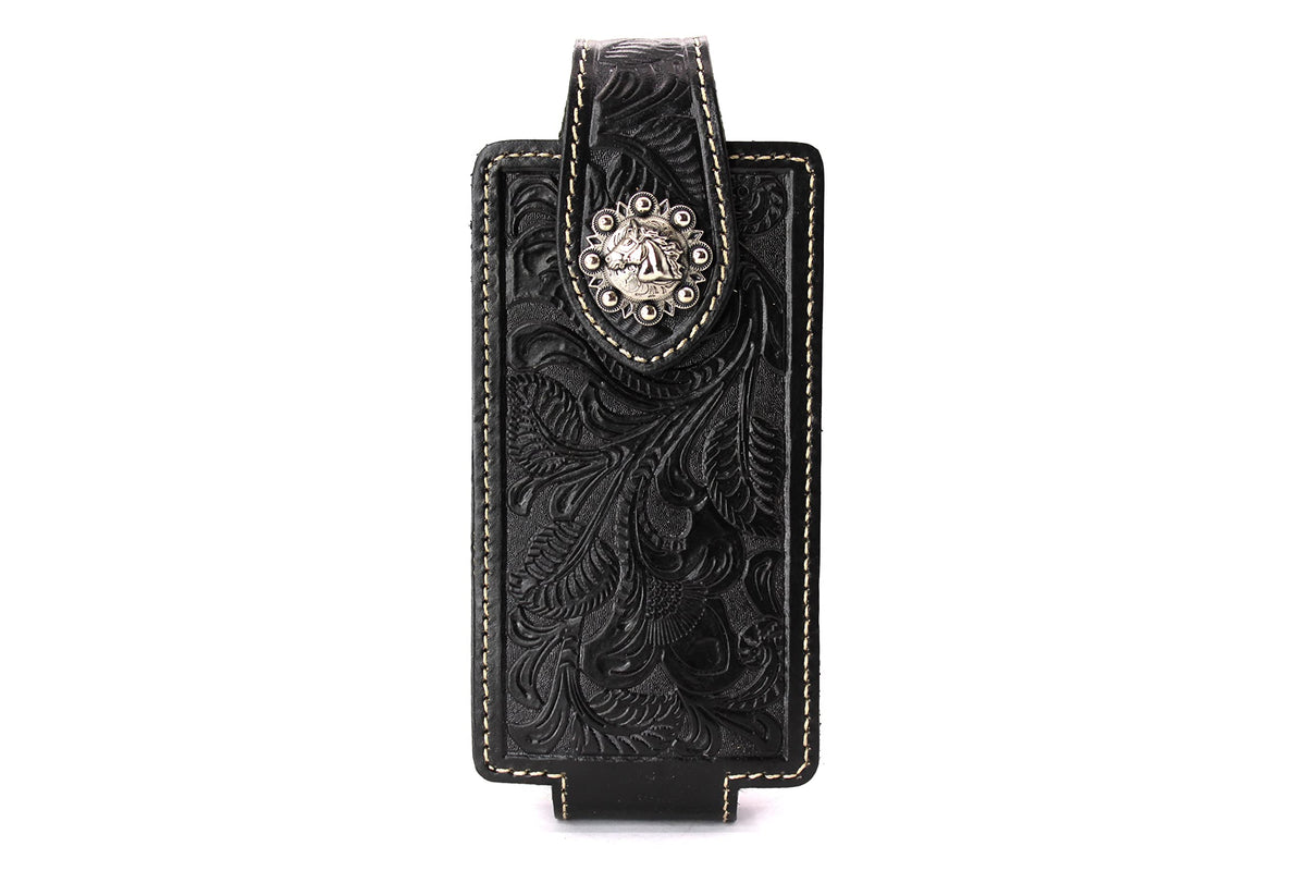 West Star Leather Phone Holster Universal Cellphone Holder Pouch With Belt Loop Magnetic Closure 6''X3'' 342B Horse Bk