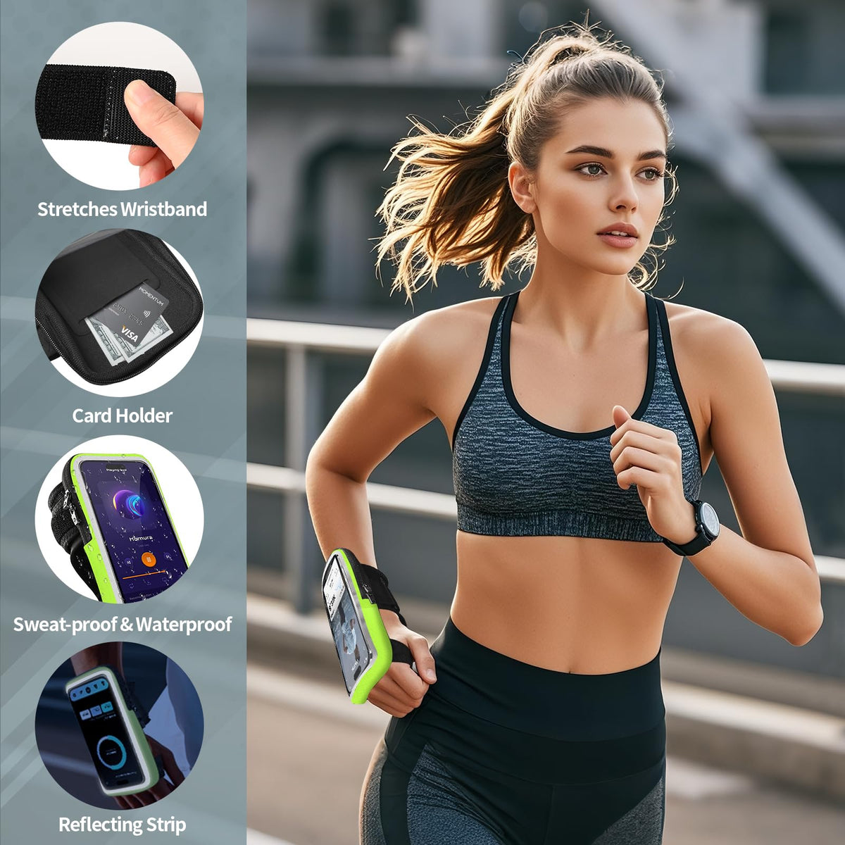 [Fits Up To 6.8 Phone] Phone Holder For Running, Running Armband With Earphone Bag, 3D Design Waterproof Sports Arm Bands Cell Phone Holder With Key Slot For Iphone 16/14/13 Pro/Plus And S24/S21