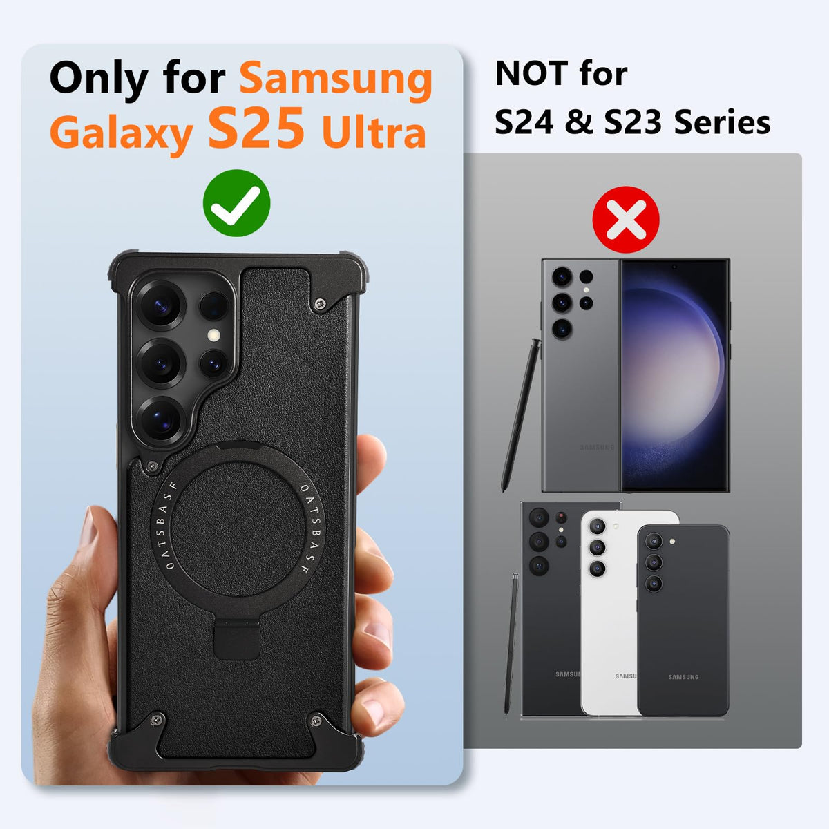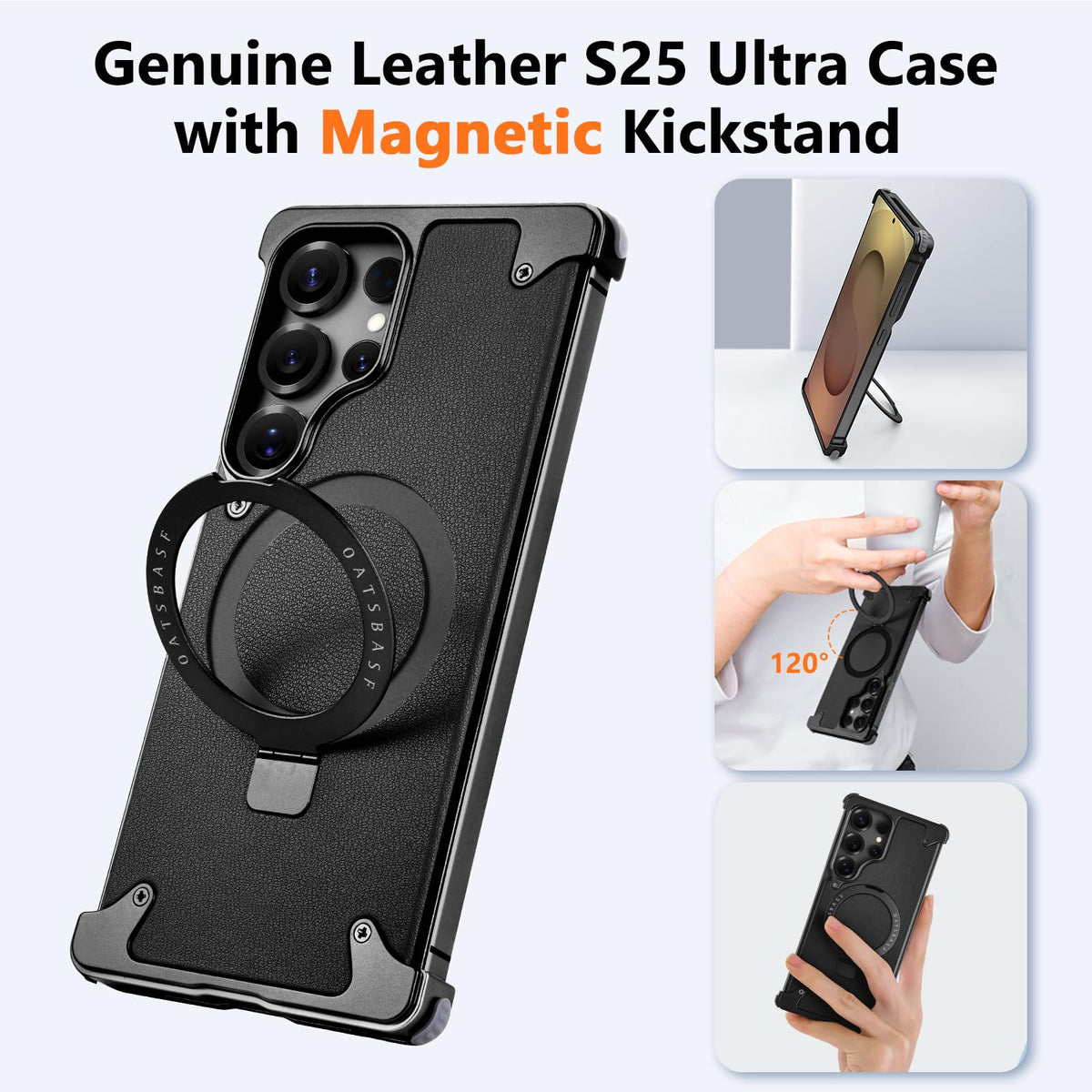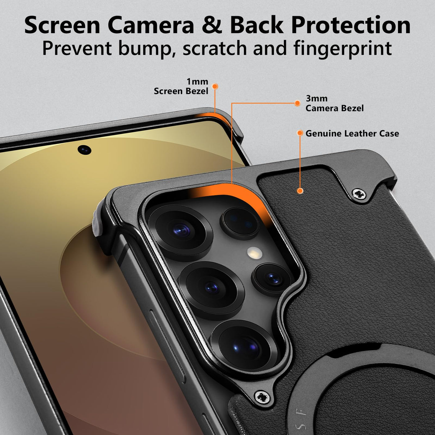 Xaovuir S25 Ultra Leather Case Magnetic With Stand, Frameless For Samsung Galaxy S25 Ultra Case For Magsafe, Slim Drop-Proof Protective S25Ultra Cover For Men Women 6.86 Inch, Leather Black Quality S25 Ultra Leather Case - The Galaxy S25 Ultra Leather Case With Stand Is Made Of Premium Aluminum And Leather, Combined With Advanced Cnc Technology, Slim And Lightweight, Which Not Only Keeps Your S25 Ultra Phone Simple And Stylish, But Also Provides Effective Protection. Note: Installation Requires Securing Screws-Please Consider This Detail If You Prefer Tool-Free Setups. Magnetic Galaxy S25 Ultra Case With Stand - The Magnetic S25 Ultra Case With Kickstand Ring, It Can Flip 120 Degrees To Provide You A Comfortable Viewing Angle. In Addition, For Samsung Galaxy S25 Ultra Case With Magnet Can Attaches Directly To Your Magnetic Car Mount For Navigation, Making Your Driving More Convenient. Slim Sleek & Frameless Design - Say Goodbye To Bulky Cases! The Xaovuir S25 Ultra Frameless Case Leather Is Sleek And Slim, Featuring A Genuine Leather That Shows Off Your Understated Style While Protecting It. It Keeps The Sides Exposed, Doesnt Affect Signal Strength, And Fully Supports Fingerprint Unlock, Flexible Buttons, And Charging Ports-Just Like The Original S25 Ultra. Four-Corner Dropproof & Camera Screen Protection - The S25 Ultra Leather Case With Stand Features Cushioned Airbag Corners For Top-Notch Impact Protection. Plus, The Phone Case For Samsung S25 Ultra Has Metal Edges That Sit 1Mm Above The Screen And 4Mm Above The Camera, Keeping Your Galaxy S25 Ultra Phone Safe From Scratches And Daily Wear. Compatibility & Professional Lifetime Service - For Samsung Galaxy S25 Ultra Leather Case Frameless Exclusively Designed For The Galaxy S25 Ultra 6.86 Inch (2025). Offers Effective Protection, Welcome Guide, 365-Day Warranty And Friendly Lifetime Customer Service.