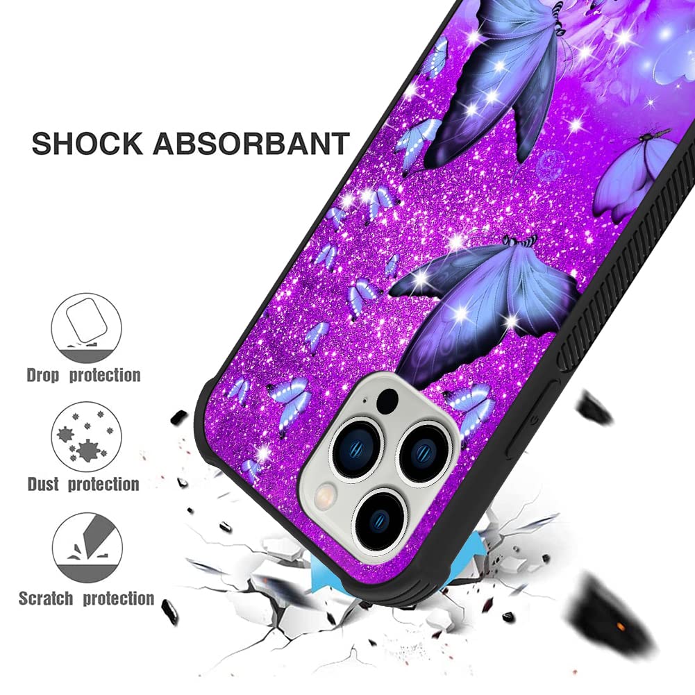 Ziye Designed For Iphone 12 Pro Max Case Purple Butterfly Hard Lanyard Case With Phone Ring Holder,Full Body Protection Shockproof Drop Protection Soft Tpu Bumper Cover Protective Phone Case