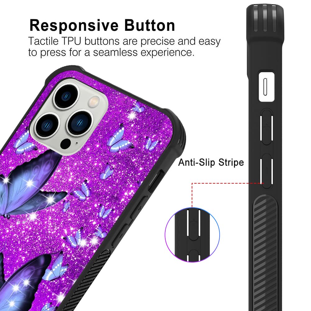 Ziye Designed For Iphone 12 Pro Max Case Purple Butterfly Hard Lanyard Case With Phone Ring Holder,Full Body Protection Shockpro