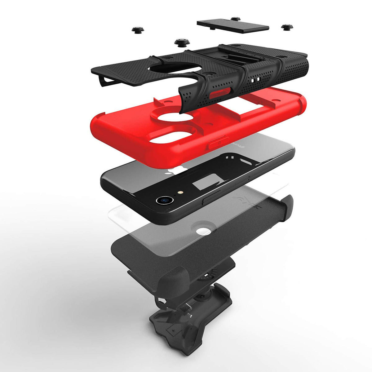Zizo Bolt Series For Iphone Xr Case With Screen Protector Kickstand Holster Lanyard - Black & Red
