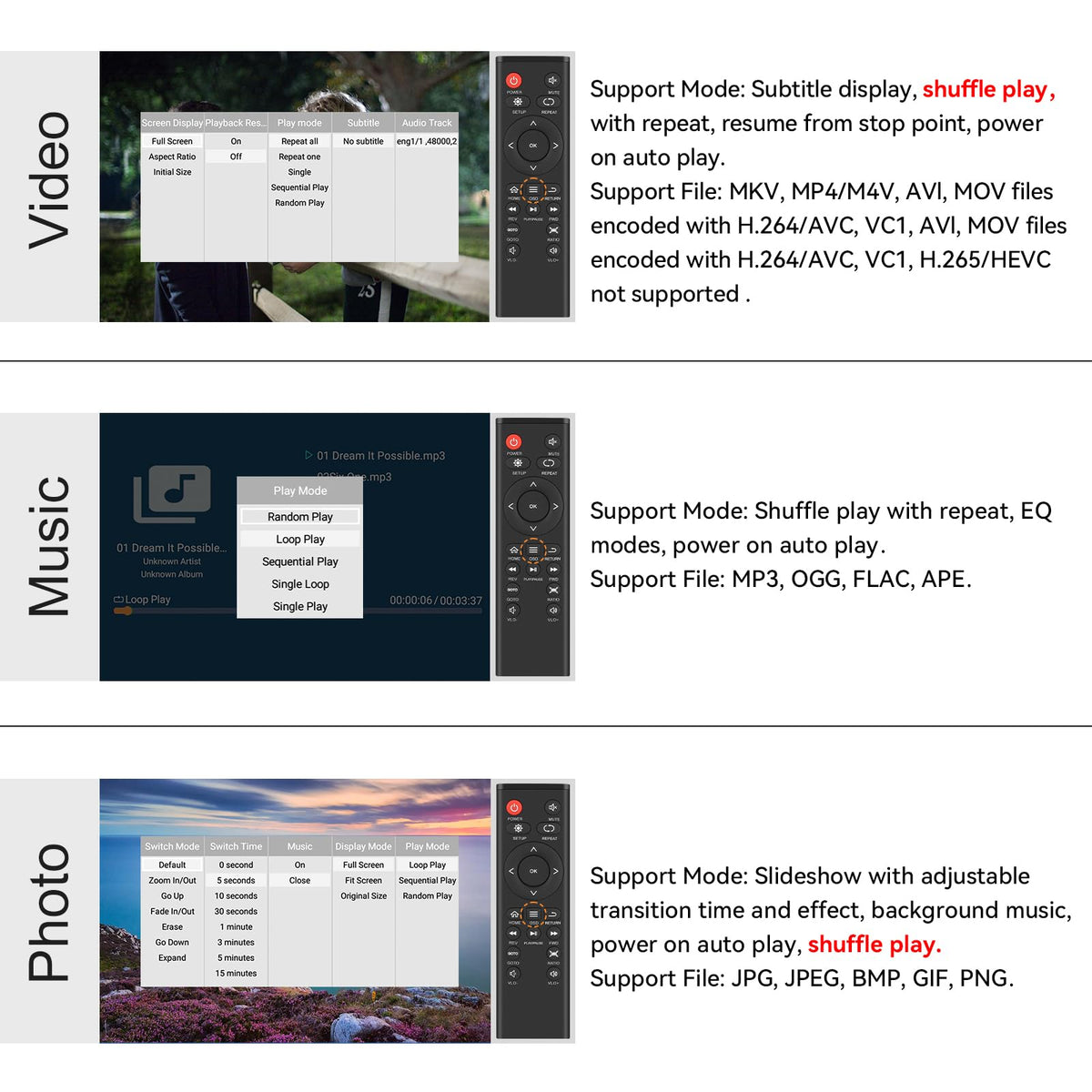Q: Does the media player come with a remote control?A: Yes, the HDMI Media Player includes an infrared remote control for convenient navigation. You can easily manage playback and access menu options from a distance, enhancing your viewing experience.