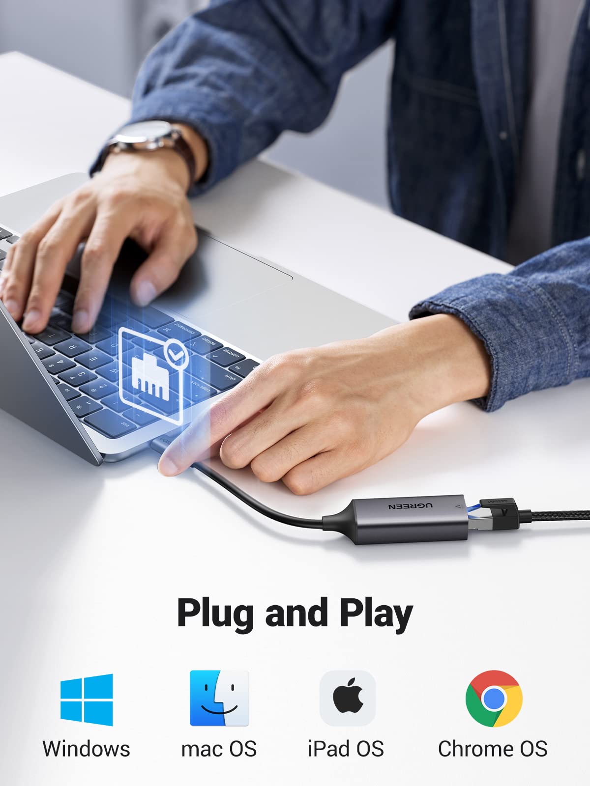 Ugreen Usb C To Ethernet Adapter, 1000Mbps, Rj45, Driver-Free, Compatible With Windows, Macos, Ipados, Chromeos, Android, Laptop