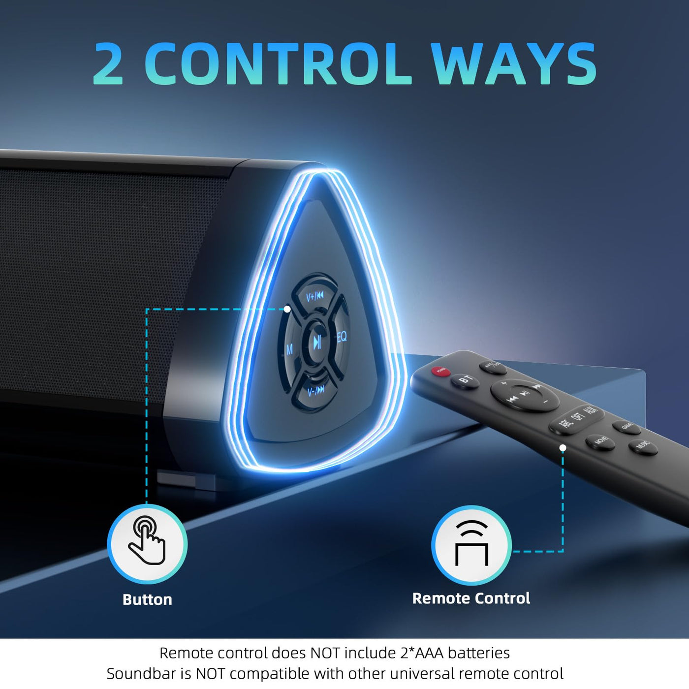 Upgrade Your Home Audio Experience With The Desobry 16-Inch Sound Bar For Smart Tv. This Small Soundbar Combines Powerful Sound Technology With A Compact Design To Provide An Immersive Surround Sound System For Tv. Perfect For Any Living Room, Bedroom, Or Office Space, This Mini Soundbar Delivers Crisp, Clear Audio That Elevates Your Viewing And Listening Experiences Across All Devices. With Dual Speakers That Enhance Both Bass And Treble, Soundbar For Tv Ensures A High-Quality Sound Experience. Whether Youre Watching Movies, Listening To Music, Or Gaming, The Surround Sound System For Tv Creates A Cinematic Feel, Making Every Detail Come To Life. The Sound Bar For Smart Tv Brings More Than Just Sound - It Transforms Your Space Into A Personal Theater. Thanks To Built-In Dsp Technology, You Can Easily Switch Between Three Equalizer Modes - Music, Movie And 3D. Each Mode Optimizes The Sound To Match The Content Youre Watching Or Listening To. Get Clear Dialogue During Tv Shows And Movies, Punchy Bass For Music, And Immersive Surround Sound For Gaming And Action-Packed Scenes. With These Eq Modes, Your Sound Bar Will Always Deliver Optimal Clarity, Providing The Best Experience For Tv Speakers And More. Small Soundbar For Tv Supports A Variety Of Connection Methods, Giving You The Flexibility To Easily Connect To Different Devices. Whether You Prefer To Use Bluetooth, Optical, Coaxial, Aux, Hdmi Arc, Or Usb, The Sound Bar For Projector Or Tv Speakers Will Seamlessly Integrate Into Your Home Entertainment System. Enjoy Superior Sound From Your Smart Tv, Projector, Pc, Or Smartphone With The Utmost Ease And Convenience. This Soundbar Offers Unparalleled Versatility, Ensuring Compatibility With All Your Favorite Devices. Control Your Tv Sound Bar With Ease Using Either The Intuitive Button Panel On The Soundbar Speaker Or The Included Remote Control. With Simple And Straightforward Controls, You Can Power The Device On/Off By Long Pressing The Circular Button In The Middle Of The Soundbar. The Included Remote Lets You Adjust Volume, Sound Modes, And Other Settings Without The Need For Complicated Programming. Please Note, This Soundbar For Tv Is Not Compatible With Other Universal Remotes, So You Can Enjoy Hassle-Free Functionality With The Included Remote. Mini Sound Bar Is Designed To Fit Seamlessly Into Any Space. The 16-Inch Size Allows It To Easily Sit In Front Of Your Tv Without Blocking The Screen Or Ir Sensor, Making It Perfect For Small Spaces Like Apartments, Offices, Or Bedrooms. With A Simple Plug-And-Play Setup, You Can Place The Soundbar For Smart Tv Or Speaker For Tv On Your Table. There Is No Complicated Installation Process - Just Set It Up, And Youre Ready To Enjoy Superior Sound From Your Tv Speakers. Whether Youre Looking To Improve Your Tv Speaker System, Connect To Your Projector, Or Use It As A Bluetooth Speaker For Tv, The Desobry Soundbar Provides An Ideal Audio Solution For Your Home. Enjoy Clear Audio, Deep Bass, And A Truly Immersive Sound Experience - All From This Compact Yet Powerful Sound Bar.