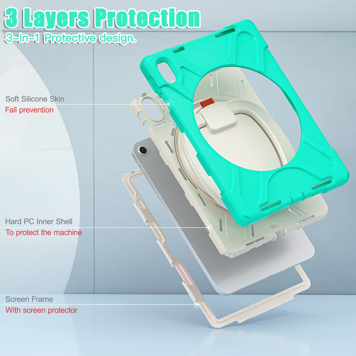 Bkounctk For Ipad 10Th Generation Case 2022,Heavy Sturdy Shockproof Kids Case With Screen Protector,Rotating Stand/Pencil Holder