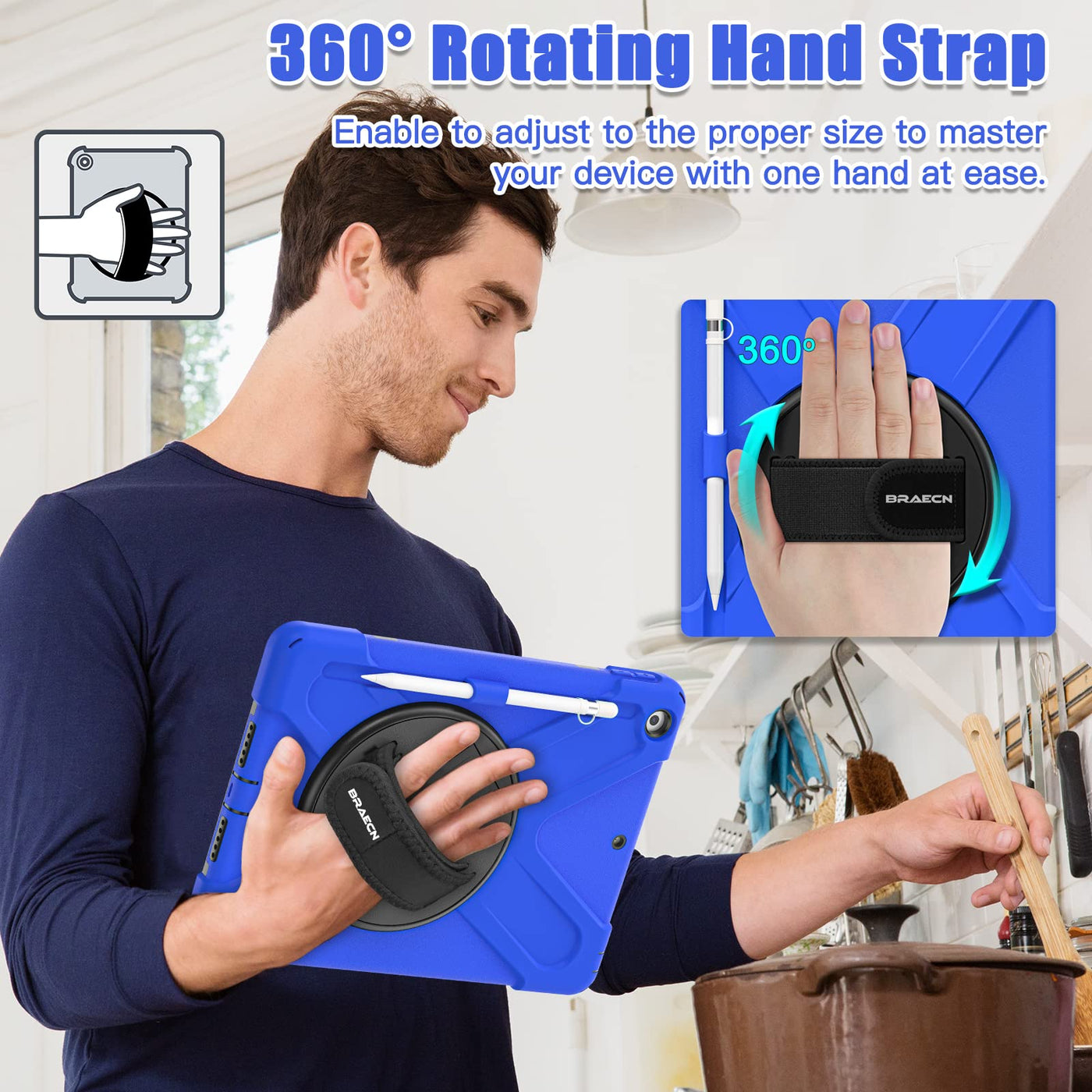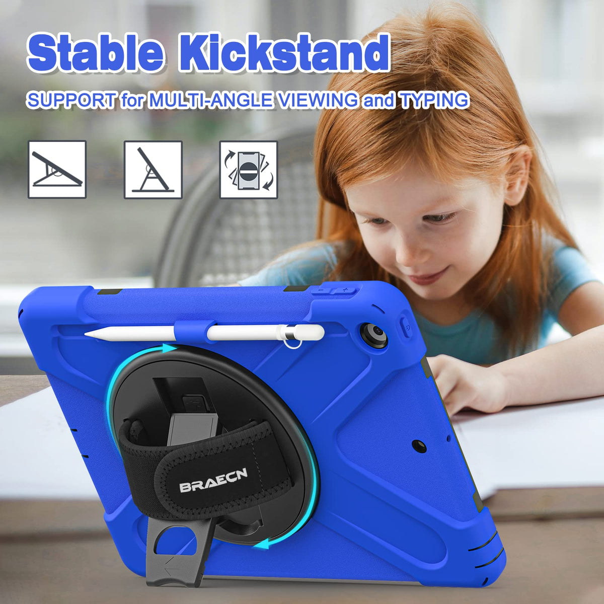 Braecn For Ipad Case 9Th/8Th/7Th Generation, 10.2 Inch Ipad Case With Hand Strap, Dropproof Kids Case With Kickstand, Shoulder S
