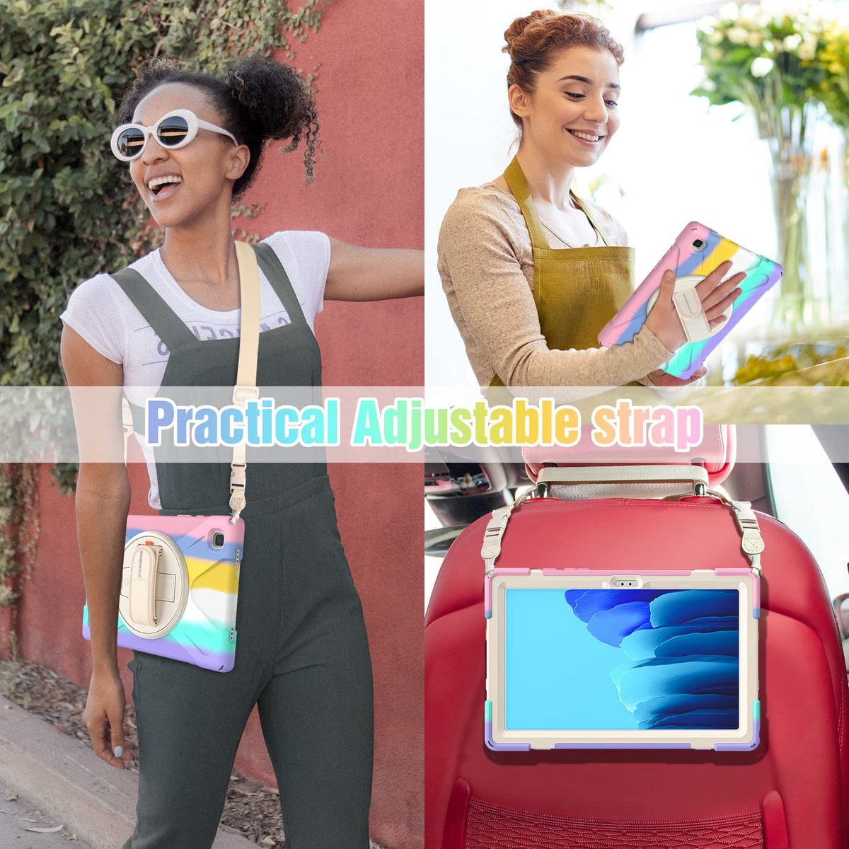 Braecnstock For Samsung Galaxy Tab A7 10.4 Inch Case 2022 2020 (Sm-T500/T503/T505/T507/T509) With 360 Rotating Hand Strap + Stand, Shoulder Strap, Pencil Holder, Screen Protector Shockproof Rugged Heavy Duty Protection Suitable For Any People ( Men Women Kids Girls Old Man ) Suitable For Any Scene ( Trave, Working, Meeting, Warehouse, Car, In School Or Outdoors )
