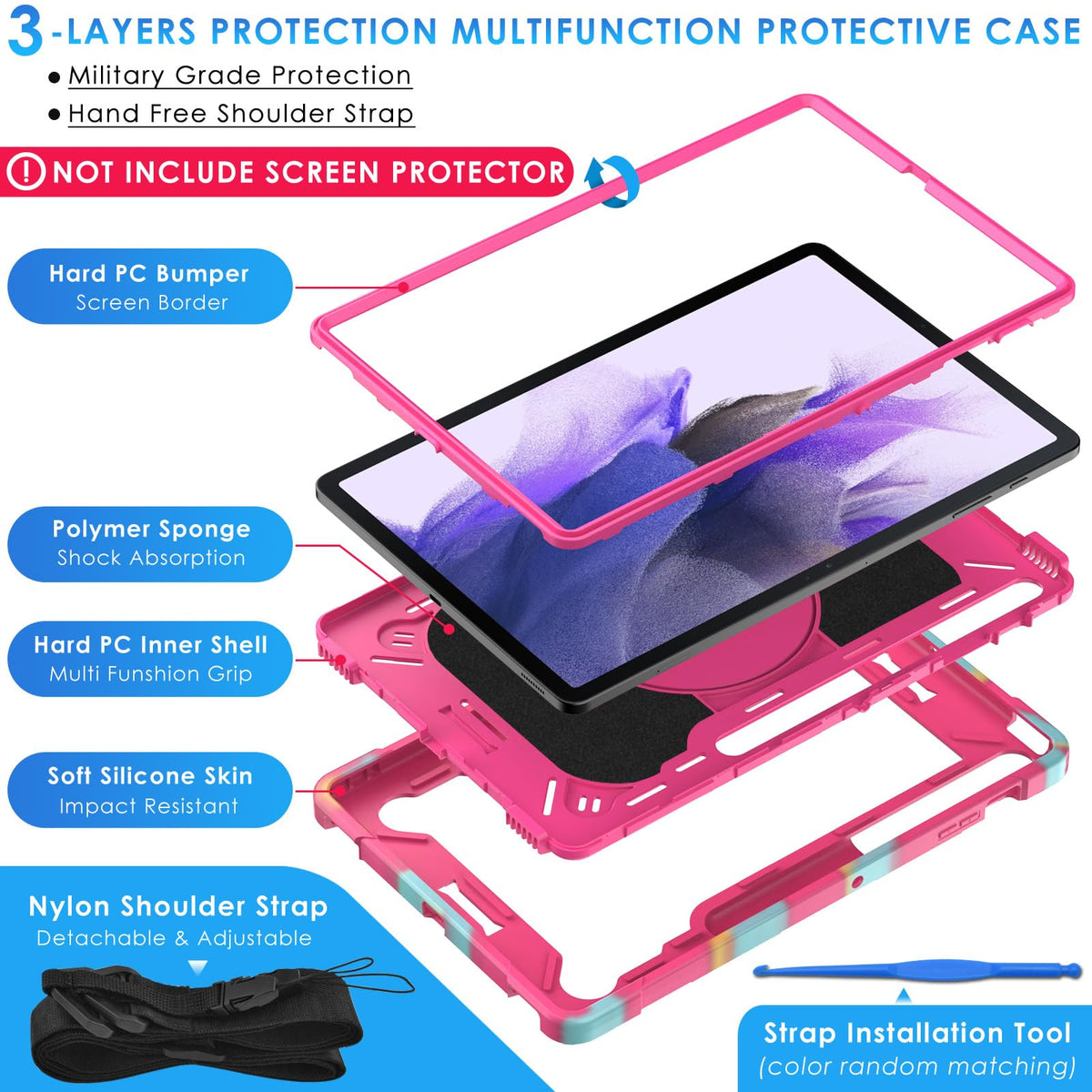 Detuosi 360 Rotating Hybrid Case For Samsung Galaxy Tab S7 Fe 5G/ S8+Plus/ S7 Plus 12.4'' With S Pen Holder & Shoulder Strap, 36