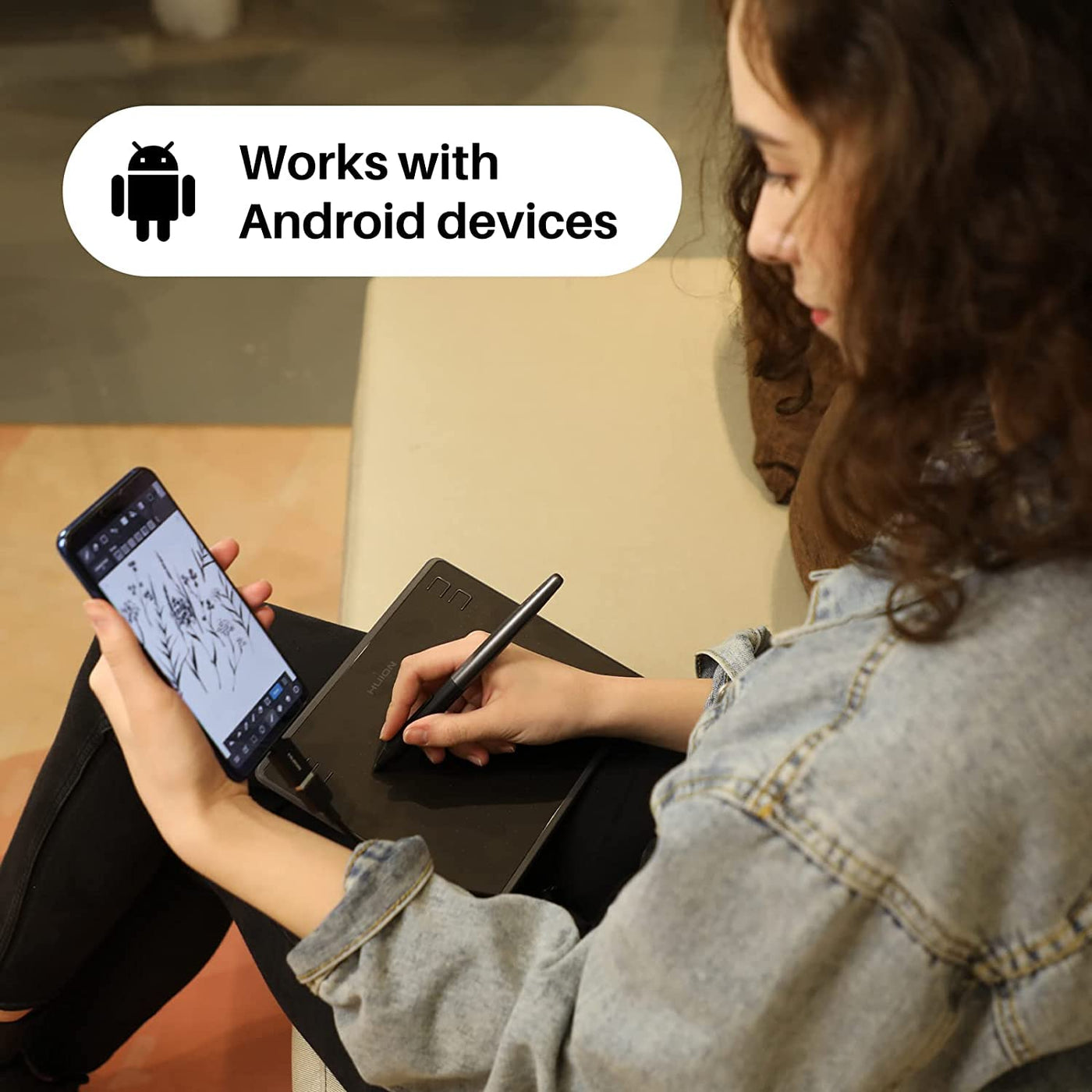 Huion A Graphics Tablet Can Be Connected To Your Phone/ Tabletotg Connector Is Requested When Pen Tablet Hs64 Is Connected To Android Device ( Mobile Phone Or Tablet). In Addition To Windows And Macos, Hs64 Also Supports Android, Which Enables You To Have Your Phone Connected To The Tablet, And Therefore Brings You Better Portability. Battery-Free Stylus With 8192 Pen Pressure Outfitted With Huions Latest Battery-Free Stylus Pw100, Say Goodbye To Charging Cables; Dont Need To Worry About The Potential Battery Leakage And Run-Out.With 5080Lpi Resolution, Makes Every Stroke More Fluent; Its Pressure Sensitivity Is Four Times Higher Than Most Of The Homogeneous Products Recently In The Market.10Mm Sensing Height,266Pps Report Rate And 5080Lpi Pen Resolution Keep Favorite Short-Cut In Handy They Are Available On The Tablet To Have Different Functions Realized Via Your Fingertip, Which Will Bring Users Higher Efficiency As They Draw.Touch Ring And Shortcuts Cant Be Used Under Phone Mode. Compact Working Area 6.3? Inches General Provides The User With The Most Comfortable Size To Work And No Delay; Create Lines And Projects As You Can Imagine, Which Brings Users Higher Effciency. Phone Working Area 4.02?.5 Inches Mobile Phone Working Area, Compatible With Android 6.0 Or Above. You Can Create Your Drawing Easier When A Idea Comes Out. Upgraded Micro Usb Interface Upgraded Micro Usb Interface Helps You Transmit The Data More Quickly And Effectively. Package Content: 1 X Huion Hs64 Tablet 1 X Battery-Free Pen Pw100 1 X Micro Usb Cable 8 X Pen Nibs With Clip 1 X Extra Pen Nibs X 10Otg Adapter 1 X Huion Artist Glove 1 X Quick Start Guide