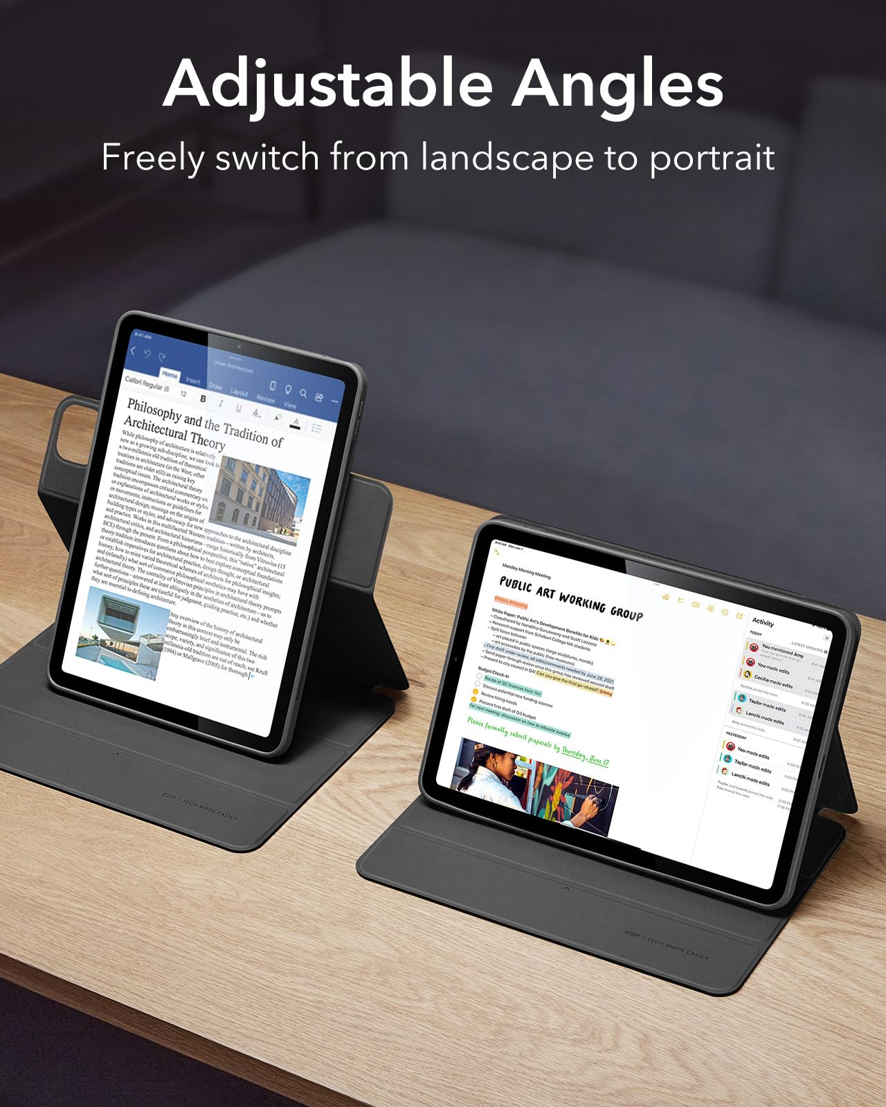 Esr For Ipad Air 11 Inch Case (2025) M3/M2, Ipad Air 7Th/6Th/5Th/4Th Generation Case (2024/2022/2020) 10.9 Inch With Pencil Holder, Removable Magnetic Cover, Vertical Stand, Rebound 360 Series, Black