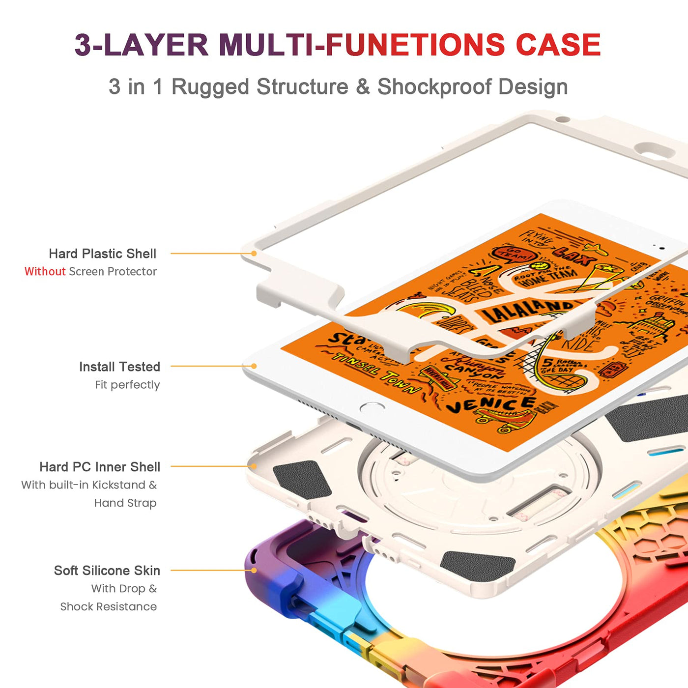 Gerutek Ipad Mini 5Th/4Th Generation Case, 3 Layer Structure Heavy Shockproof Ipad Mini 5/4 Case, Ipad Mini Case 5Th Generation