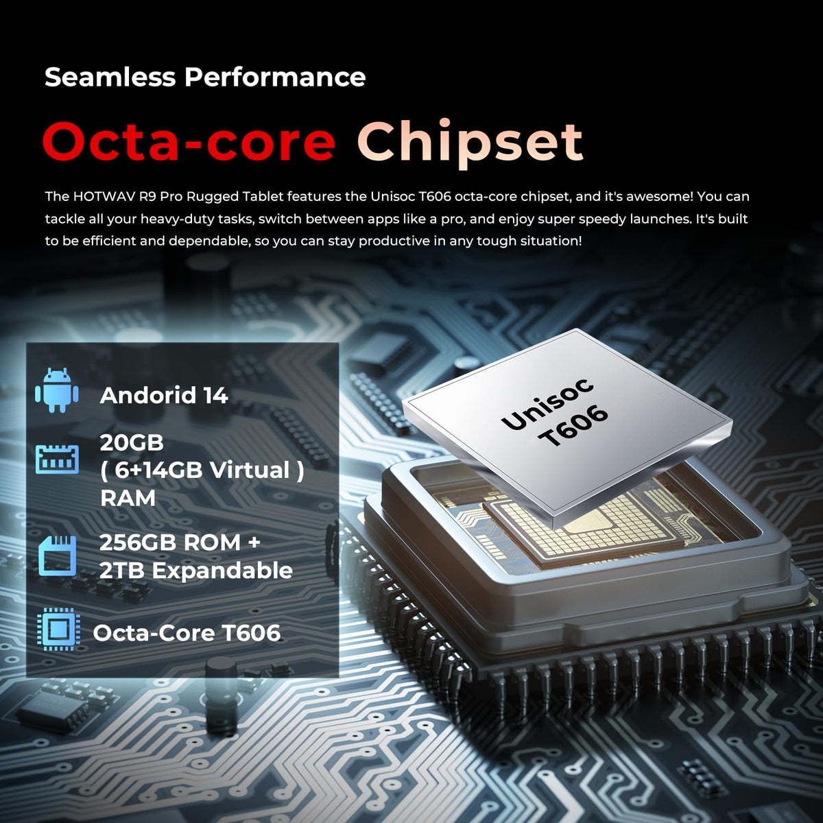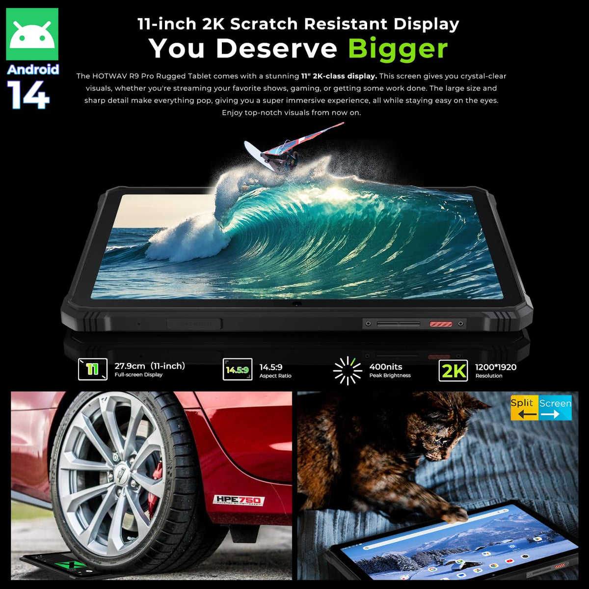 The Hotwav R9 Pro Rugged Android Tablet Comes With The Latest Android 14 Systerm, Ip68/Ip69K Waterproof Shockproof And Dropproof, The Hotwav R9 Pro Rugged Tablet Is Your Perfect Outdoor Companion. With Ip68 / Ip69K Standards, This Water Resistance Rugged Tablet Can Protect Against Water, Dust, Shock, Drop, Etc., Also Suitable For Extreme Temperatures From -40C To 75C. Whether You'Re A Fisherman, Hunter, Factory Worker, Firefighter, Outdoor Enthusiast Or Motorist, The Hotwav R9 Pro Android 14 Rugged Tablet Helps You Focus On Your Work Or Activities With Peace Of Mind, Stable Signal And The Unbreakable Body Are Ready For Any Challenge.