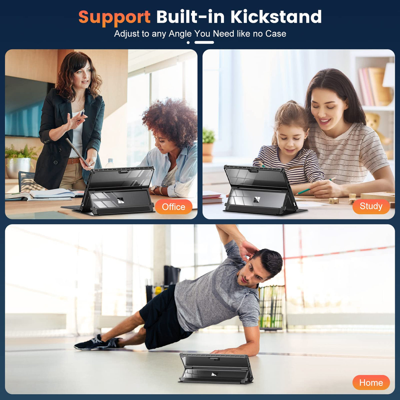 Q: Can I use the Surface Pro 8 at different angles with this case?A: Yes, the case supports the kickstand of the Surface Pro 8, allowing you to place your device at multiple angles just like the original design, enhancing your viewing and typing experience.