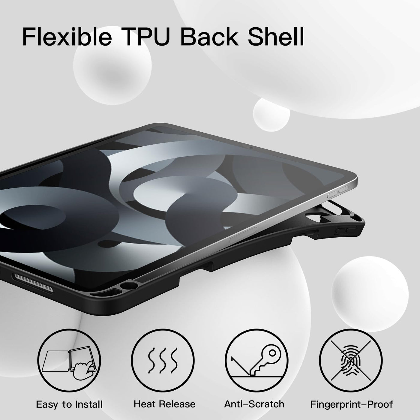 Jetech Case For Ipad Air 11-Inch M3/M2 (2025/2024), Ipad Air 5/4 (2022/2020 5Th/4Th Generation 10.9-Inch) With Pencil Holder, Slim Tablet Cover With Soft Tpu Back, Auto Wake/Sleep (Black)