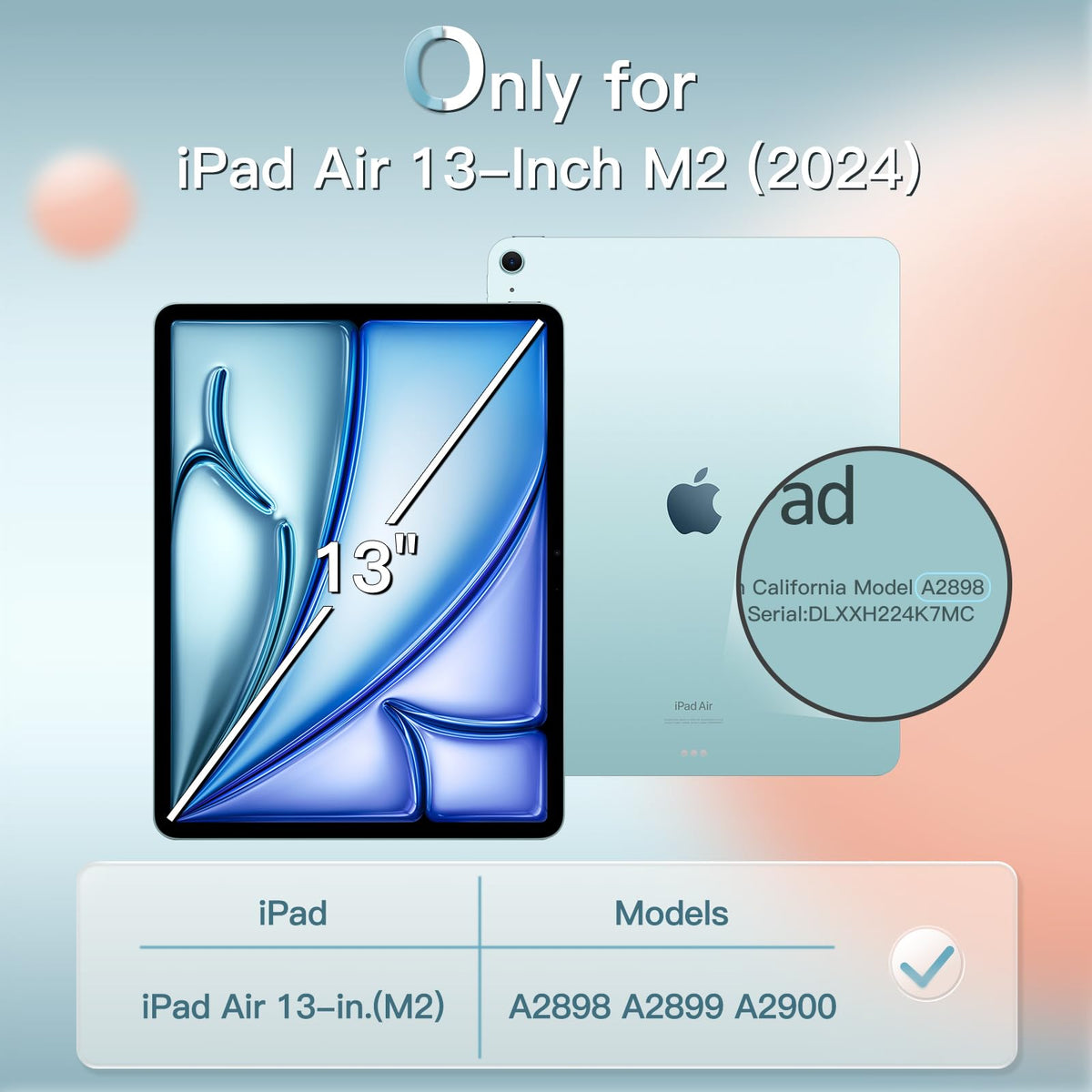 Supports Pencil Pro/Pencil (Usb-C). Designed For Ipad Air 13-Inch M2 (2024). Fit Ipad Model Numbers: A2898 / A2899 / A2900. Please Check The Back Bottom Of Your Ipad To Find The Model Number | Translucent Frosted Back Cover With Slim And Colorful Design, And Protect Your Ipad Against Fingerprints, Scratches, And Shocks | Synthetic Exterior And Smooth Interior Provide Comprehensive Protection For Your Ipad | Magnetic Smart Cover Supports Automatic Sleep/Wake Function. The Tri-Fold Front Cover Can Support Ipad In Two Standing Positions For Viewing And Typing | Easy Access To All The Controls And Features; Perfect Cutouts For Speakers, Camera And Other Ports