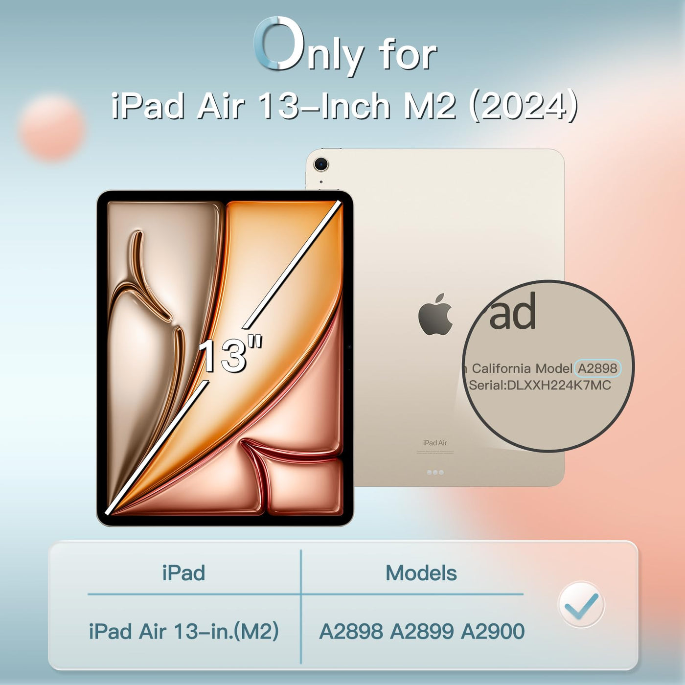 Supports Pencil Pro/Pencil (Usb-C). Designed For Ipad Air 13-Inch M2 (2024). Fit Ipad Model Numbers: A2898 / A2899 / A2900. Please Check The Back Bottom Of Your Ipad To Find The Model Number | Translucent Frosted Back Cover With Slim And Colorful Design, And Protect Your Ipad Against Fingerprints, Scratches, And Shocks | Synthetic Exterior And Smooth Interior Provide Comprehensive Protection For Your Ipad | Magnetic Smart Cover Supports Automatic Sleep/Wake Function. The Tri-Fold Front Cover Can Support Ipad In Two Standing Positions For Viewing And Typing | Easy Access To All The Controls And Features; Perfect Cutouts For Speakers, Camera And Other Ports
