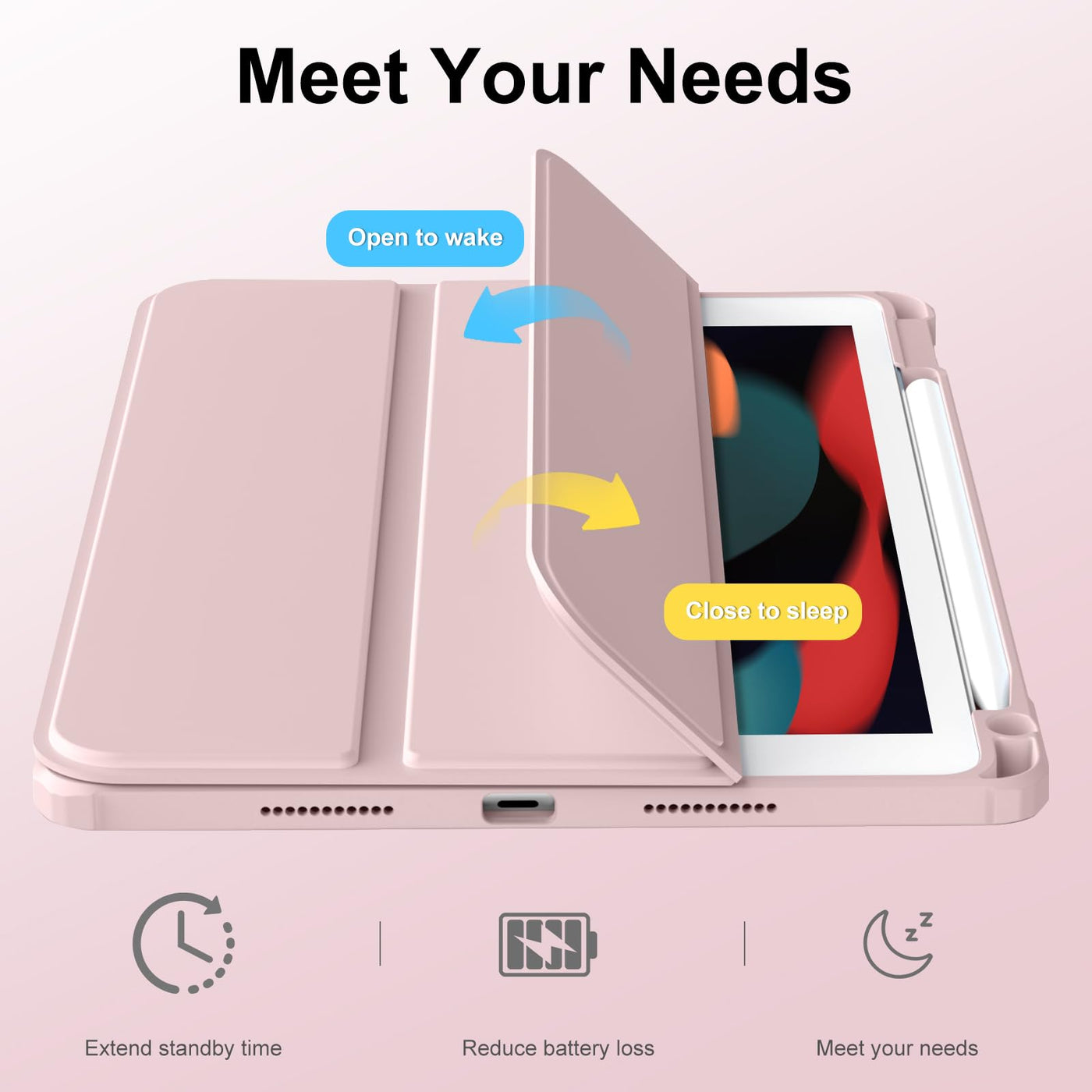Q: How does the auto wake/sleep feature work?A: The auto wake/sleep feature is enabled by a magnetic strip in the case. When you open the case, your iPad will wake up automatically, and when you close it, the iPad will go to sleep, helping to save battery life.