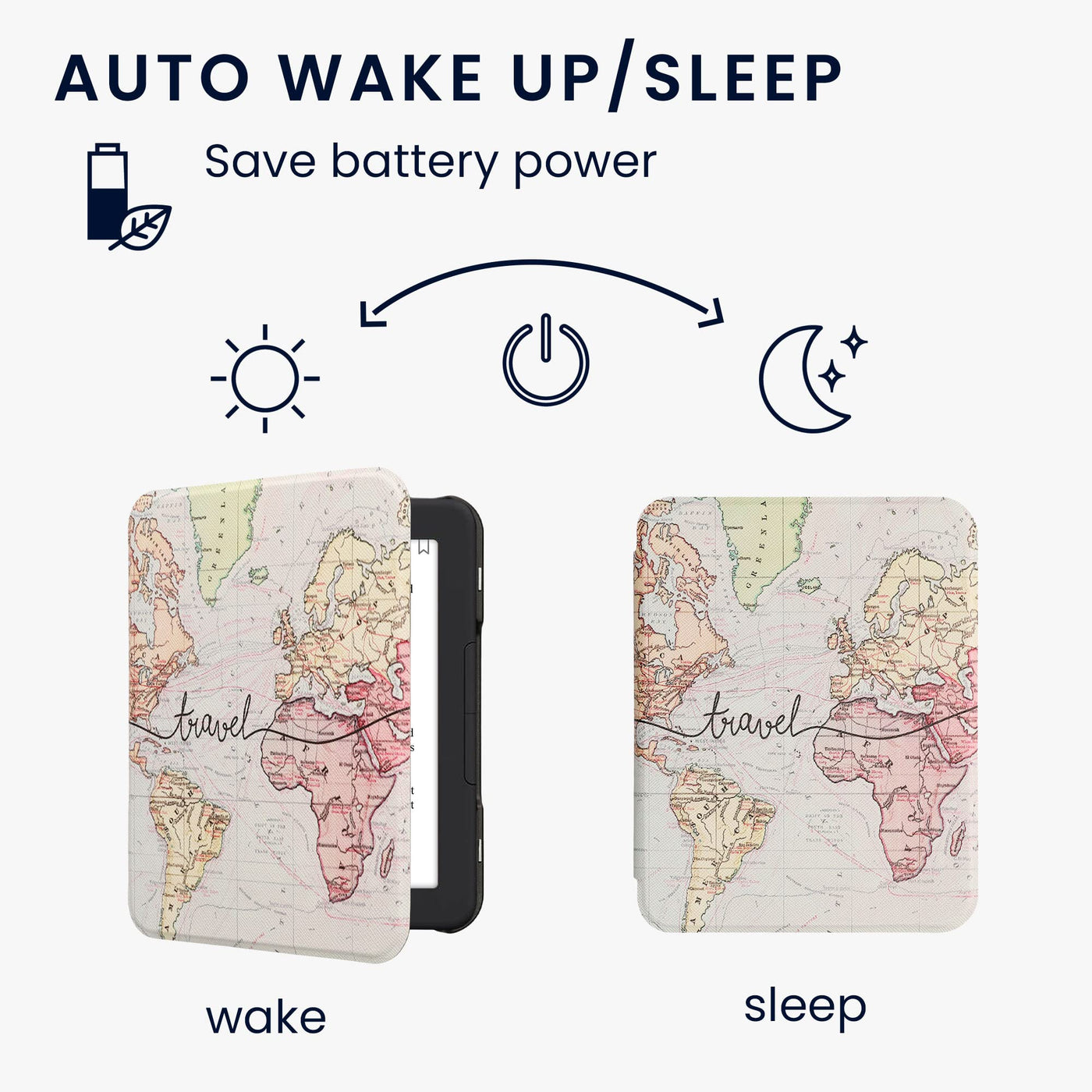 Kwmobile Case Compatible With Barnes & Noble Nook Glowlight 4 / 4E Case - Ereader Cover - Travel Black/Multicolor