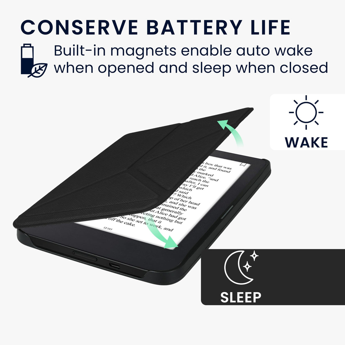 Compatibility: Compatible With Kobo Clara 2E / Tolino Shine 4 | Leather Look: Ereader Case Is Made Of Durable Synthetic Leather In Black With Soft Interior To Protect Against Shocks, Falls, Drops, Scratches And Bumps | Clever Design: Different Folds Make It Possible To Fold The Case Like An Origami And Set Up A Stand For Your E-Reader | Double Sided: With This Case, Your Device Can Open Like A Book And Is Always Protected On Both Sides | Magnetic Closure: Strong Magnets Snap The Protective Cover Shut To Keep E-Book Firmly In Place And Protected