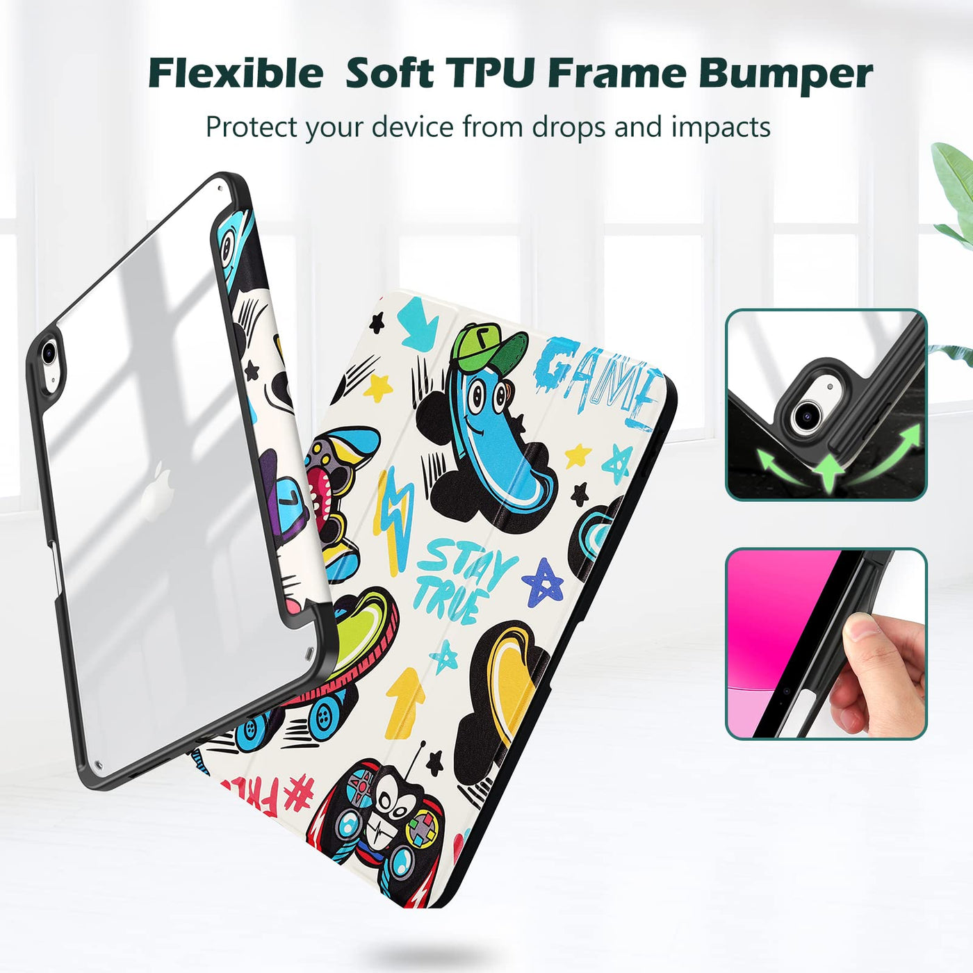Protective Case For Ipad (A16) 11Th Generation 11-Inch 2025 Release (Model: A3354 A3355 A3356), Ipad 10Th Generation 10.9-Inch 2022 Release (Model: A2696 A2757 A2777). Also Compatible With Usb-C Pencil & 1St Generation Pencil. Please Check Back Bottom Of Your Ipad To Find The Model Number | Transparent Hard Back Cover Shows Off The Original Beauty Of Your Device; Built-In Pencil Holder For Keeping Your Pencil Safe And Secure | Flexible Tpu Frame And Soft Microfiber Lining Protect Your Ipad From Shocks, Drops And Scratches; Sleek Front Cover Offers Comfortable Sense Of Touch | Tri-Fold Front Cover With Two Standing Positions Are Provided For Satisfying Your Viewing And Typing Needs | Support Auto Sleep/Wake Feature; Magnet Secures The Case Closure; Full Access To All Features (Cameras, Speaker, Ports And Buttons)