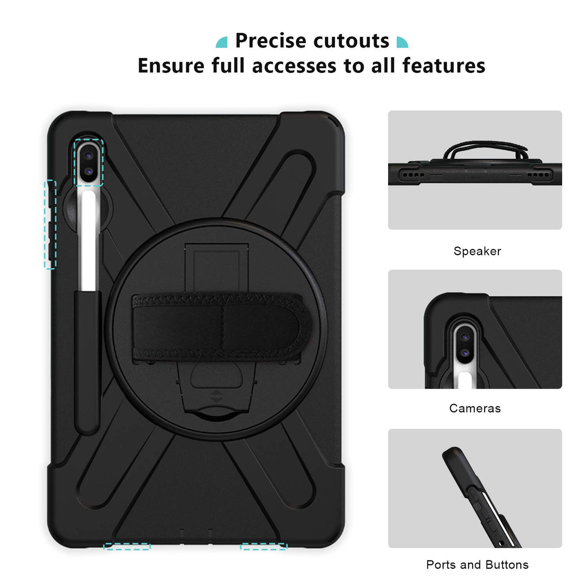 Heavy Duty Protective Case For Samsung Galaxy Tab S6 10.5 Tablet Sm-T860 (Wi-Fi) Sm-T865 (Lte) 2019 Sm-T867; Not Compatible With Any Other Model Device; Please Kindly Check The Model Number Sm-T *** On The Tablet Setting Before Purchase | 360 Degree Rotatable Kickstand Offers Optimum Position For Typing Or Viewing; Ergonomic And Comfortable Back Handle Allows You To Grip Your Tablet Securely And Steadily With One Hand, Worry-Free From Dropping It | Adjustable And Removable Shoulder Strap Provides You Ultimate Convenience For Carrying Around; You Can Even Mount It To Car Headrest For Back Seat Hand-Free Viewing, Ideal For Working, Studying And Travelling | Advanced 3 In 1 Construction With Premium Pc And Shock-Absorbing Tpu Material Offers Comprehensive Protection For Your Tablet, Efficiently Prevents It From Accidental Drop, Shock, Skid And Scratch | Extra Cut Out For S Pen: Your S Pen Can Be Attached Magnetically, Charged Wirelessly When Your Tablet Is Placed Inside This Case. Full Access To All Features (Cameras, Speaker, Ports And Buttons)