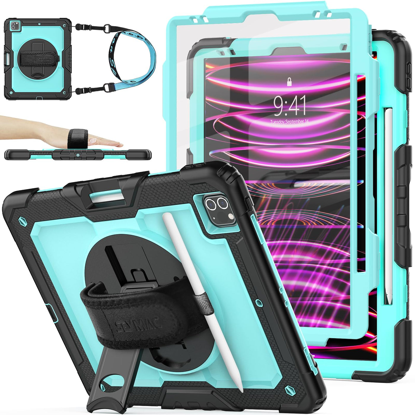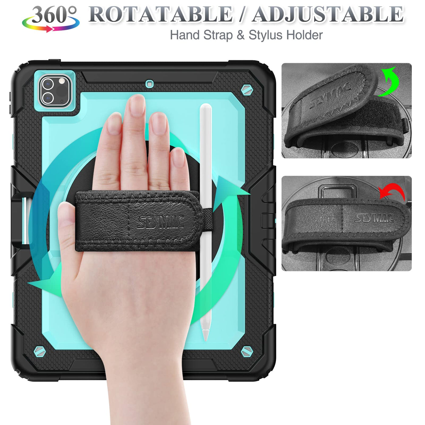 Seymac Stock Case For Ipad Pro 12.9'' 2022/2021/2020/2018 With Screen Protector 360 Rotating Stand Hand Strap, Drop Proof Case F