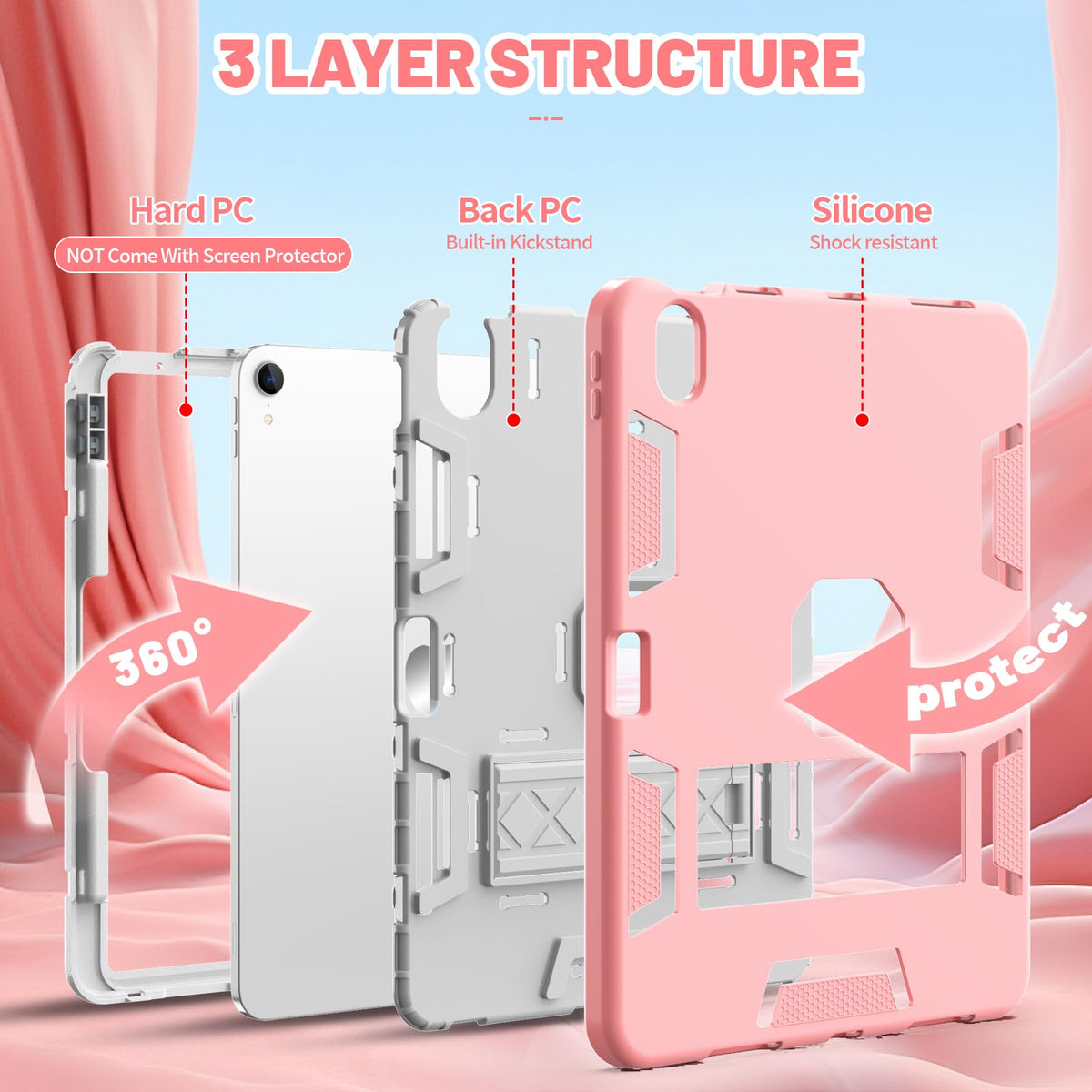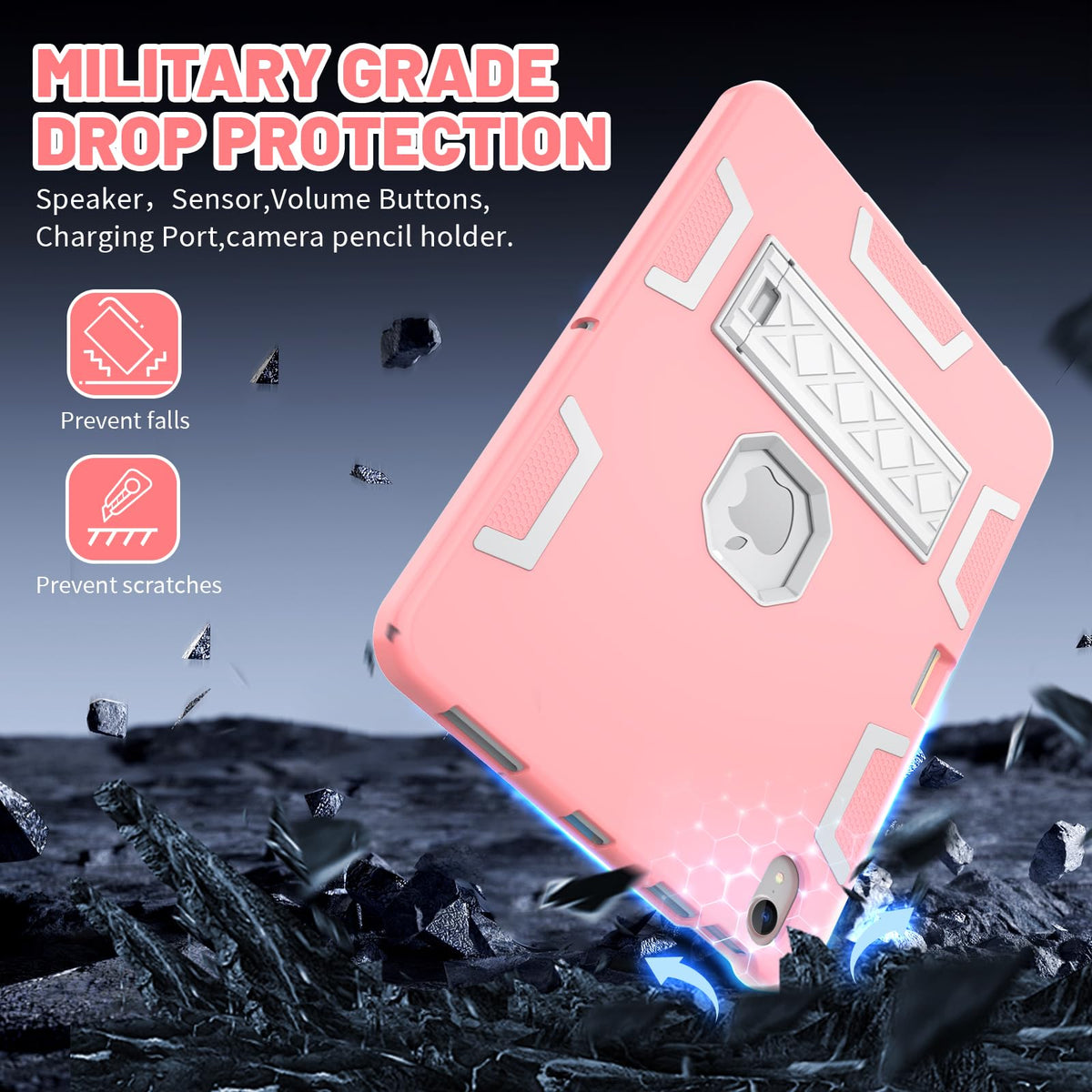 Q: How does the SPIUST case protect my iPad from damage?A: The SPIUST case features a shockproof rugged design made of high-quality flexible silicone and durable polycarbonate materials, effectively guarding your iPad against scratches, accidental drops, collisions, and impacts.