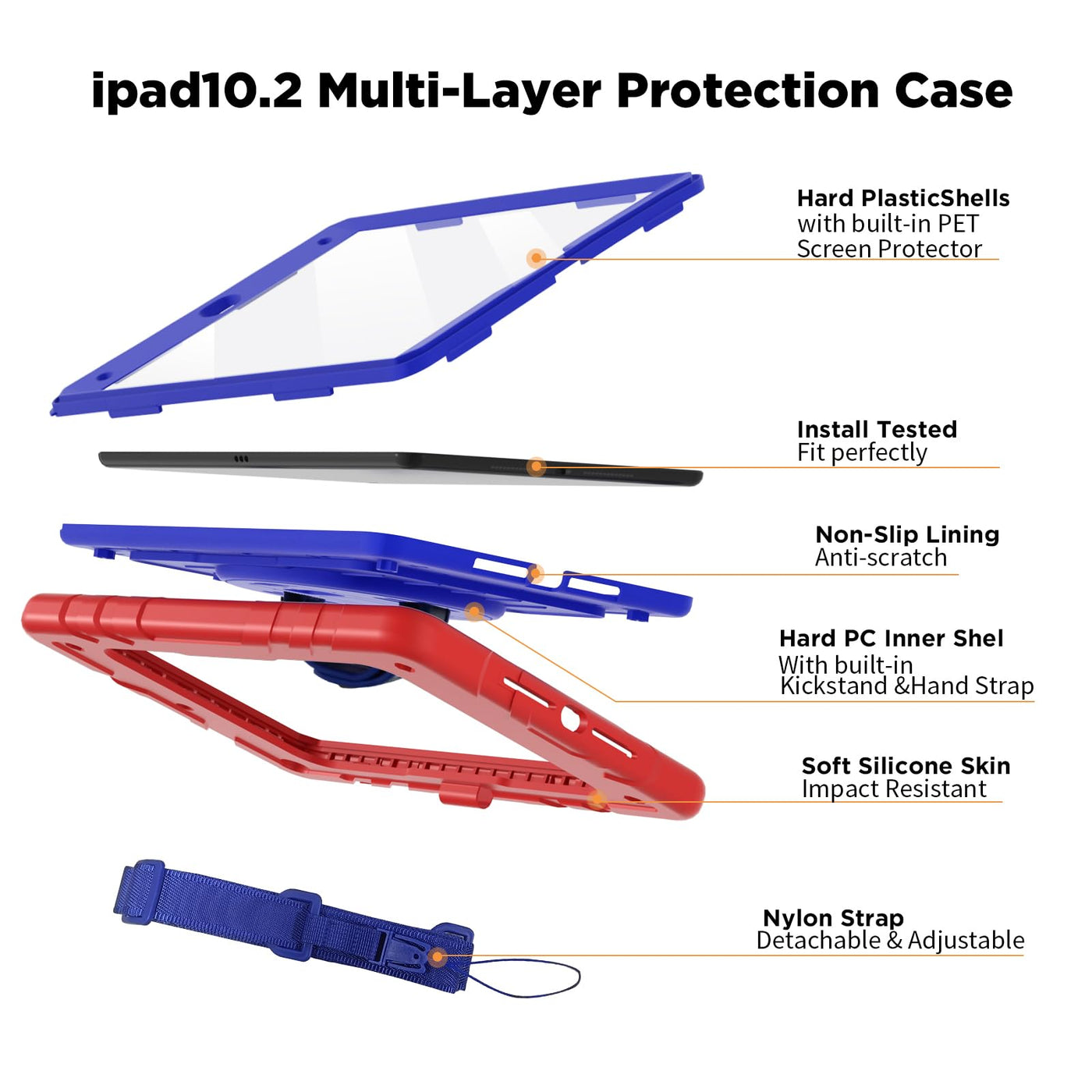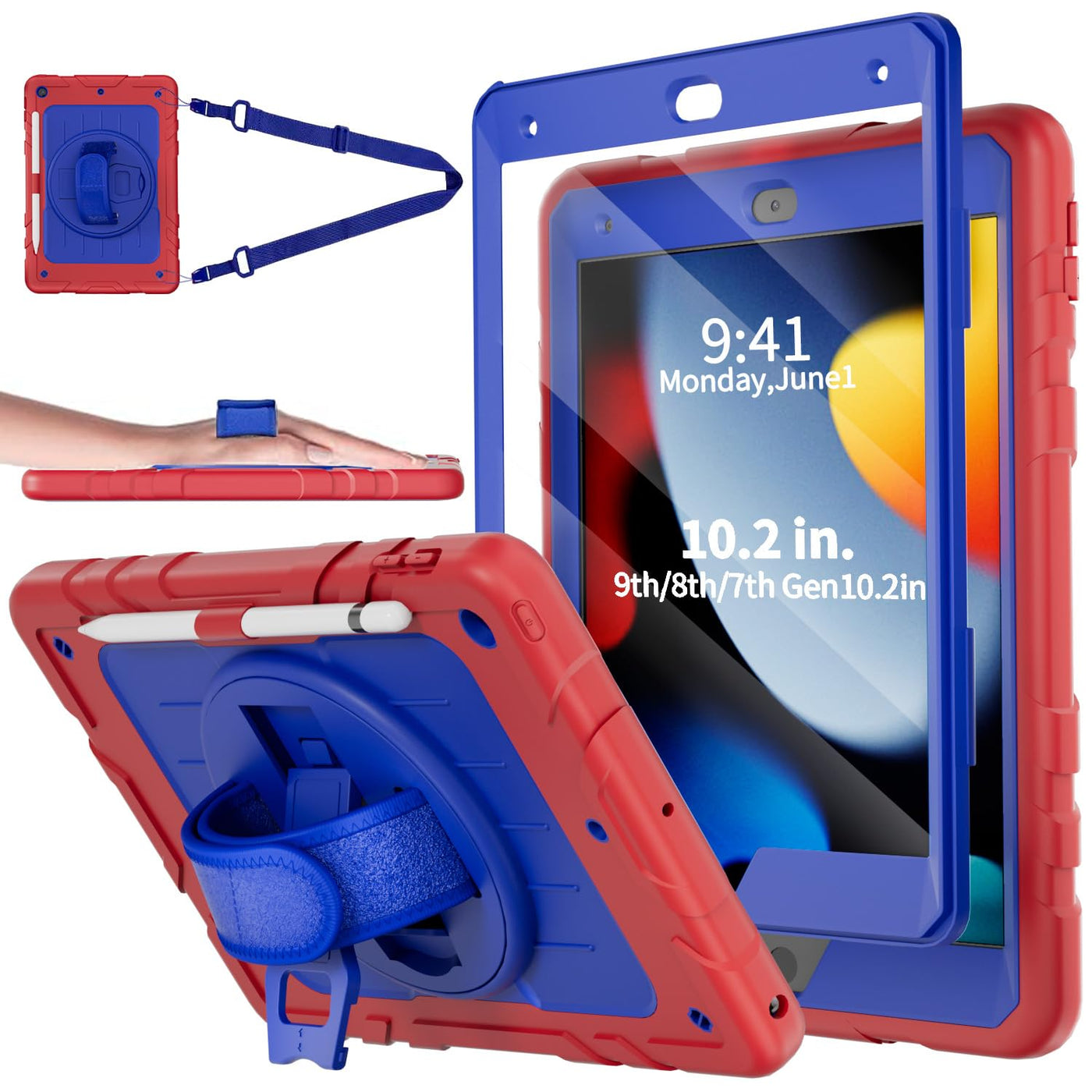 Stweap Case For Ipad 9Th/8Th/7Th Generation-Built-In Screen Protector,With Pencil Holder & 360Rotating Hand Strap,Shoulder Strap