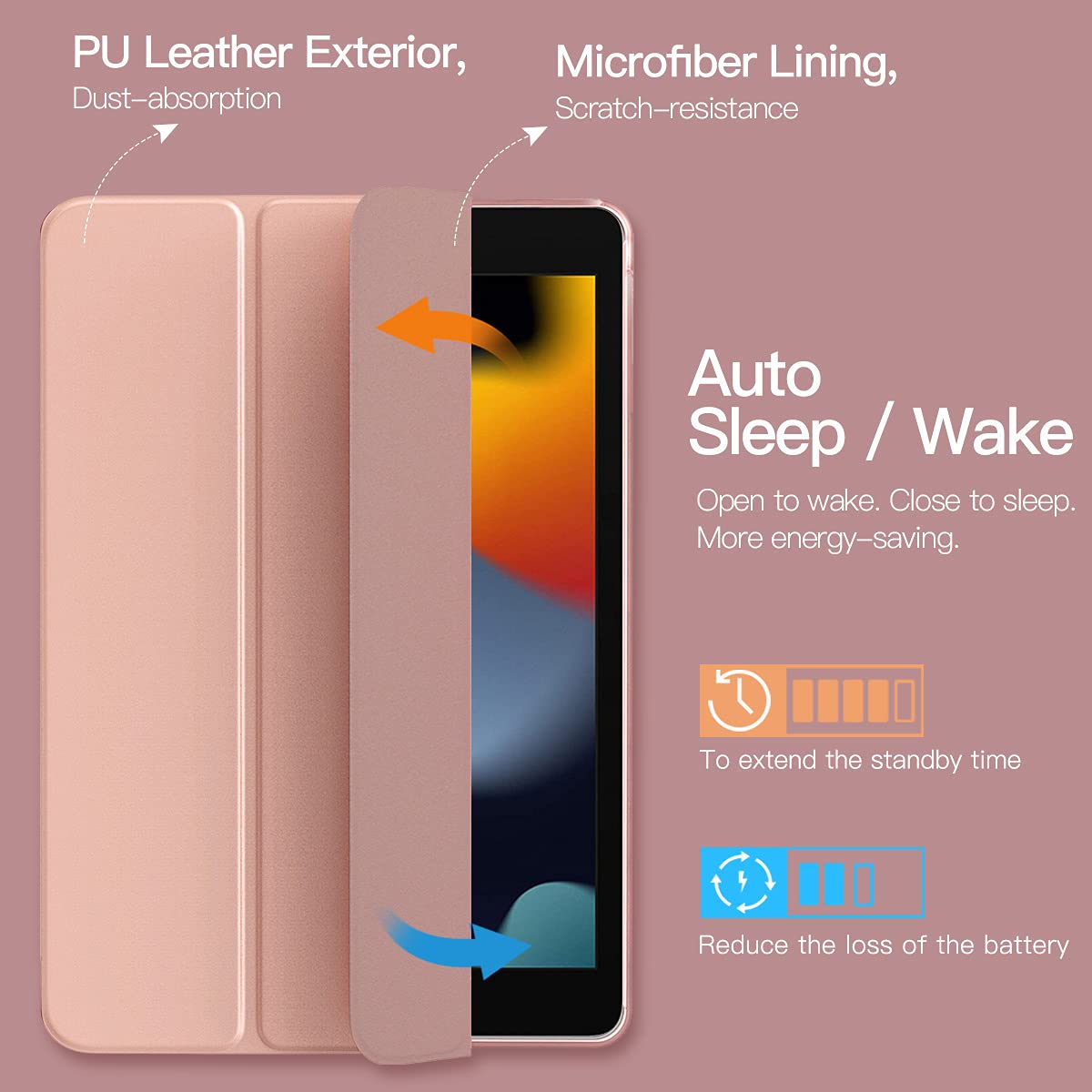 Timovo For Ipad 10.2 Case Ipad 9Th Generation 2021/ 8Th Generation 2020/ 7Th Generation 2019 Case,Slim Translucent Hard Pc Protective Smart Cover With Stand, Rose Gold