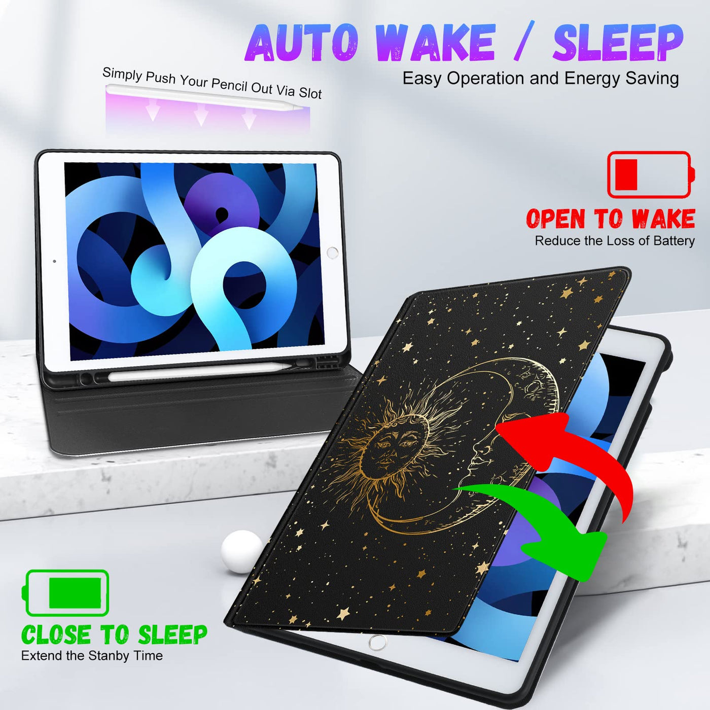 Uppuppy For Ipad 9Th/8Th/7Th Generation Case 10.2 Inch Girls Cute Boys Women Folio Smart Cover Pencil Holder Sun And Moon Aesthe