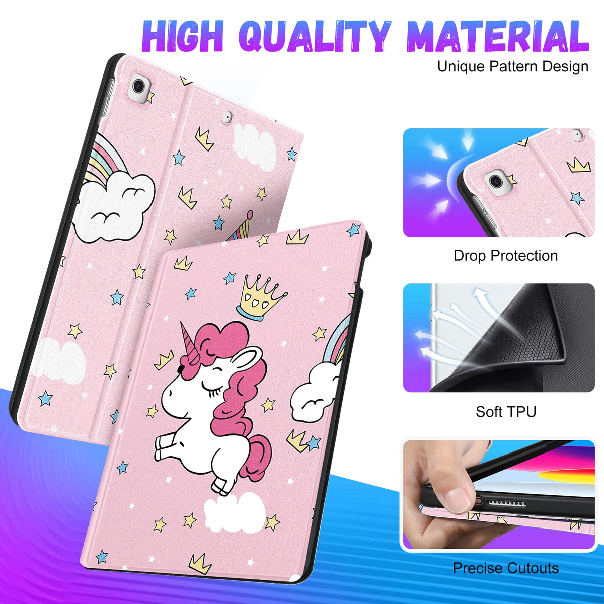 Uppuppy For Ipad 9Th/8Th/7Th Generation Case 10.2 Inch Girls Cute Kids Women Folio Smart Cover With Pencil Holder Cartoon Design