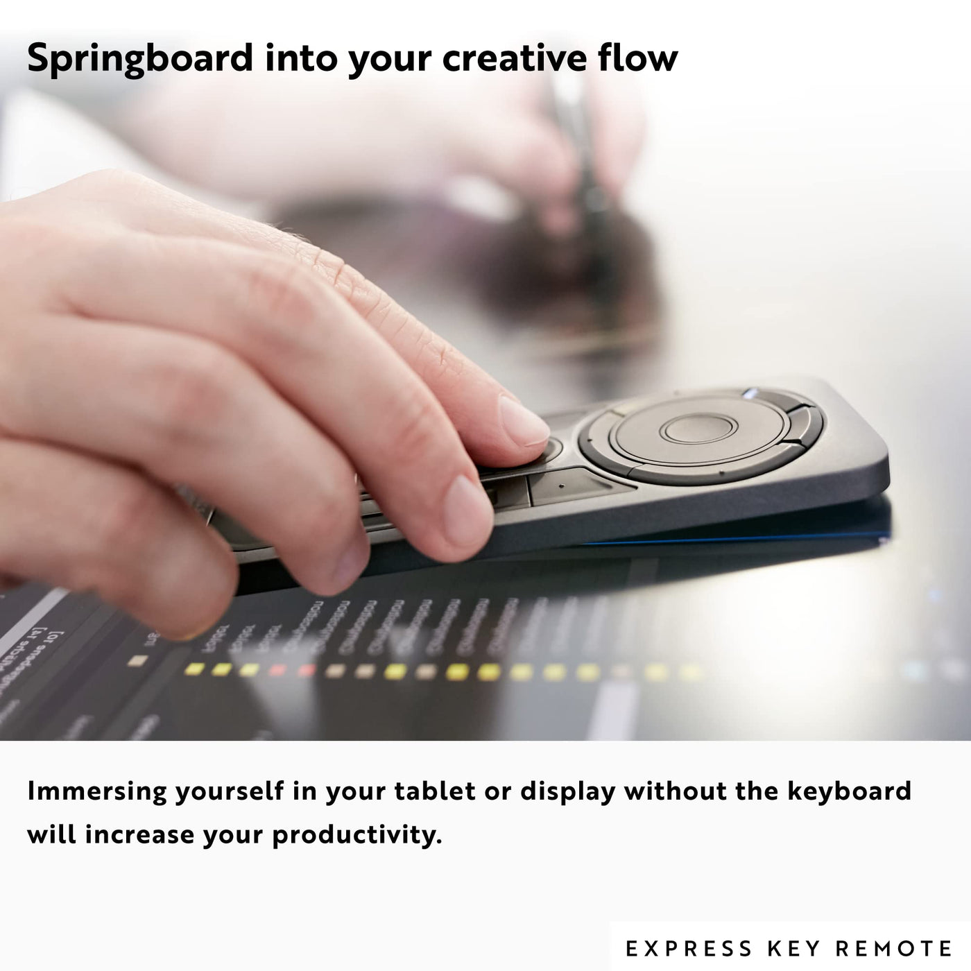 The Wireless Express Key Remote For Cintiq And Intuits Pro Is Designed For More Efficiency And Comfort. A Set Of 17 Customizable Buttons And Touch Ring Allow For Instant One-Touch Access To Timesaving Shortcuts In All Your Favorite Creative Applications. Place The Express Key Remote Anywhere Its Most Convenient While Drawing - On Screen, In Your Hand Or Beside Your Keyboard. Connect Up To Five Express Key Remotes At One Time, One For Each Of Your Creative Software Applications, To Optimize Your Workflow. Spend Less Time Searching For What You Need And More Time Getting Lost In Your Ideas.
