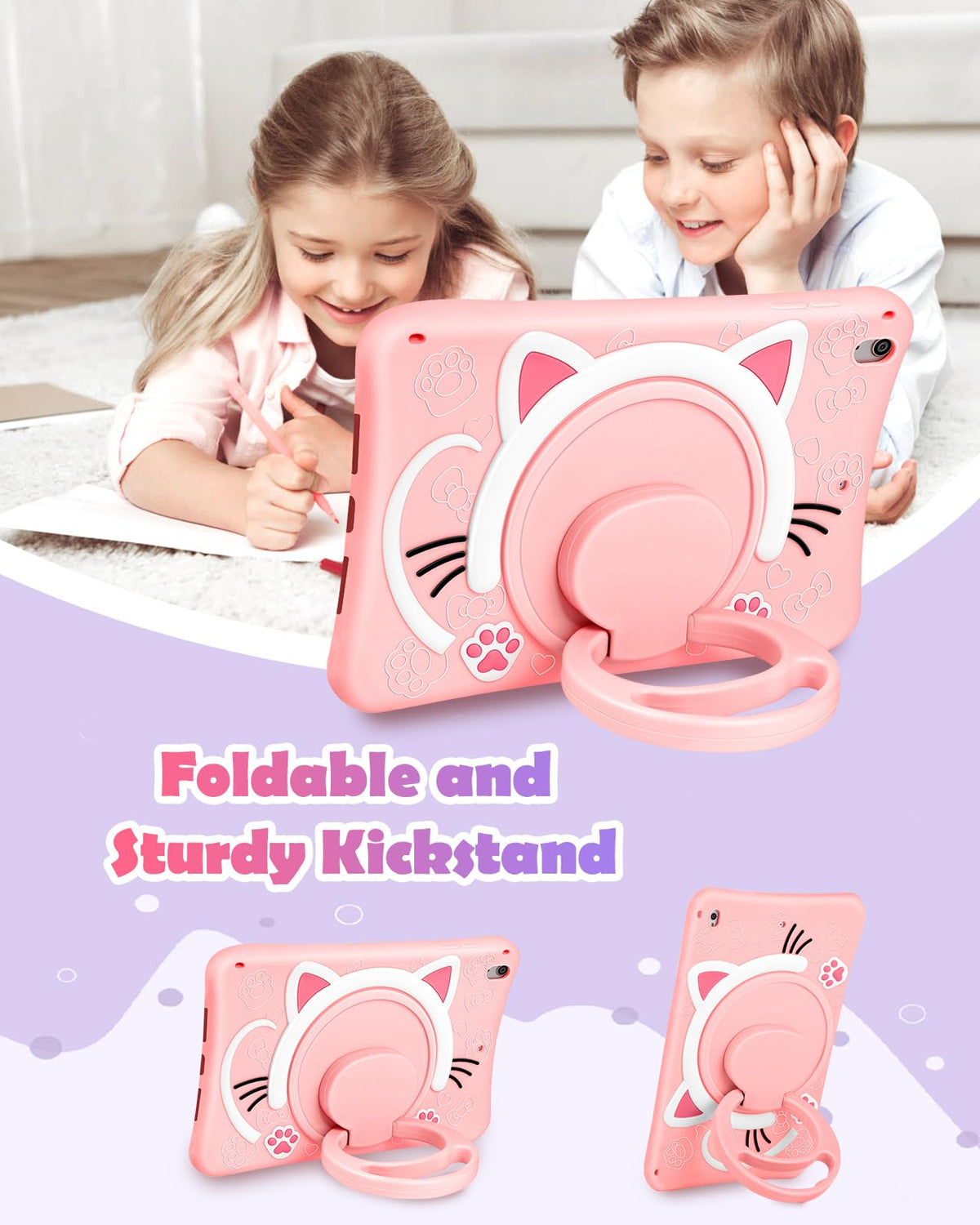Wazzasoft For Ipad Air 3Rd Generation Case, Pro 10.5 Case Girls Cute Cat Kawaii Cover Girly 3D Cartoon With Rotating Handle S