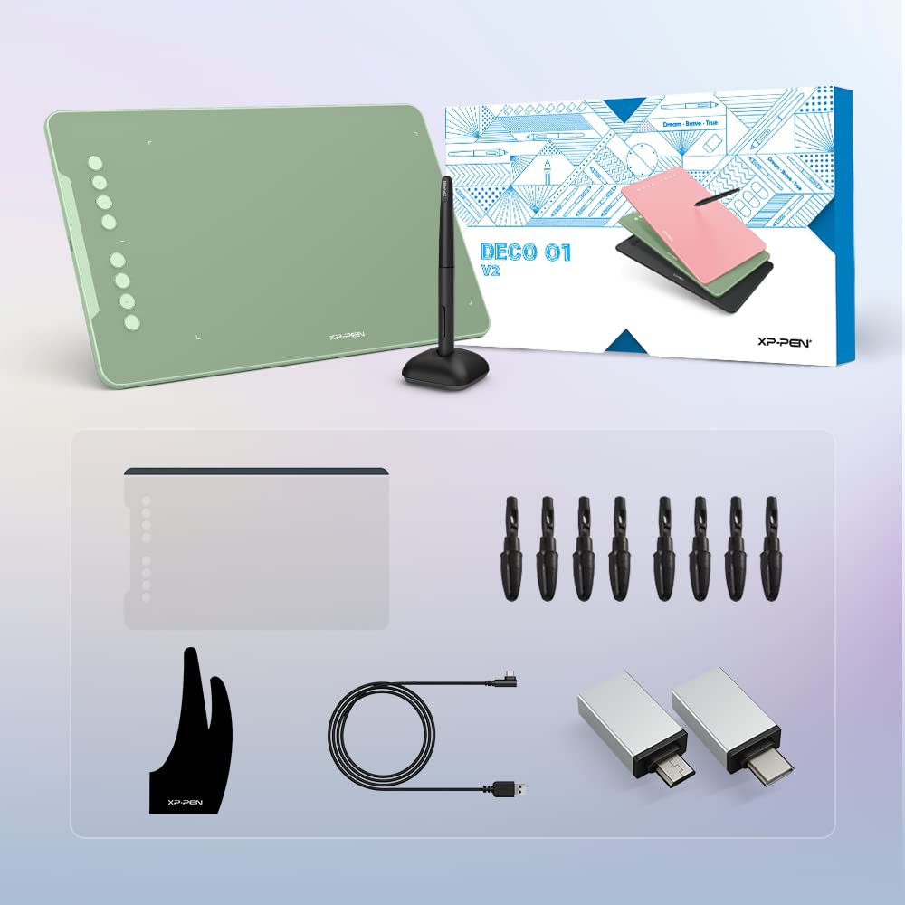 Xppen Deco 01 V2 Drawing Tablet 10X6.25 Graphics Tablet Digital Drawing Tablet For Chromebook With 8192 Levels Pressure Battery-