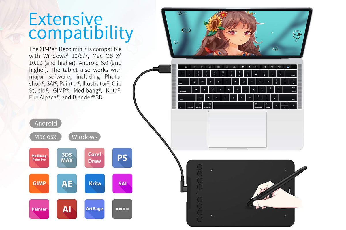 Xppen Deco Mini7 Drawing Tablet Computer Graphic Tablet With 8192 Levels Pressure, 7 X 4 Inch Artist Pen Tablet 8 Shortcut Keys