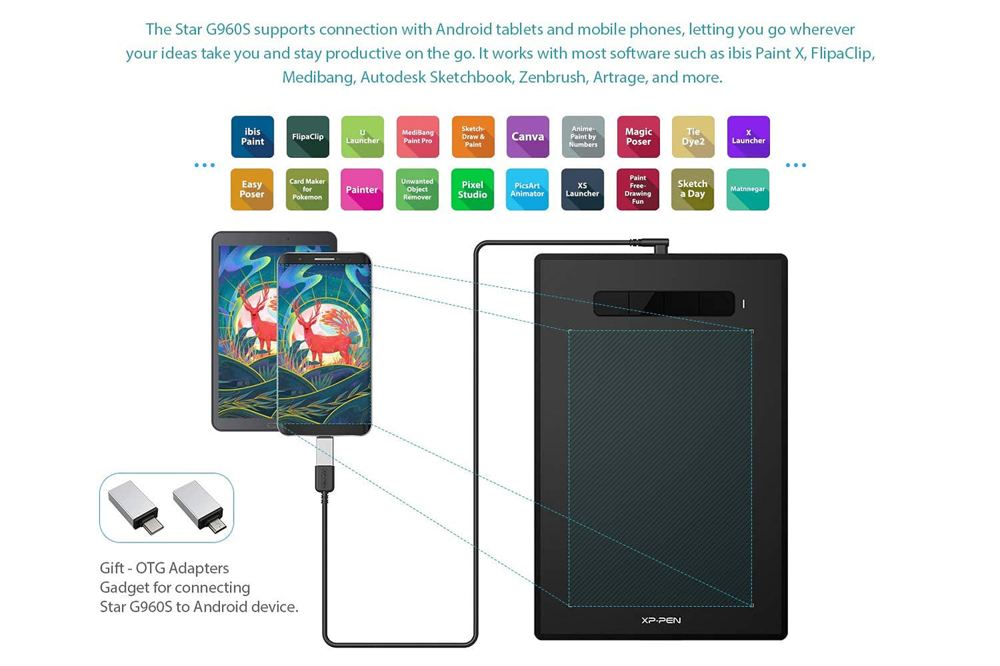 Xppen Star G960S Graphics Drawing Tablet 9 X 6 Inch With 8192 Levels Pressure Sensitivity Tilt Support Passive Pen 4 Shortcut Ke