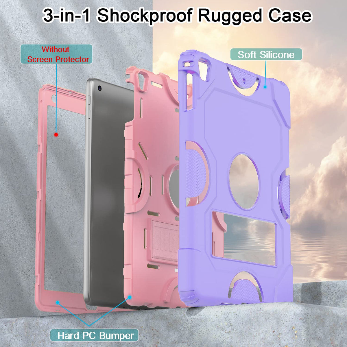 Zonefoker Heavy Duty Shockproof Rugged Protective Case For Ipad 9.7 Inch, Purple+Rose Gold