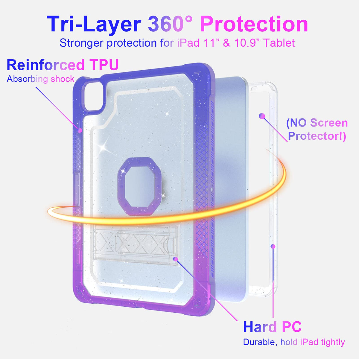Zonefoker Iscommitted To Designing And Building Solid, Sturdy And Functional Productswith High-Quality Product Features!1.[Glitter Style] Static Sliver Glitter Injection Molded Into The Translucent Frosted Hard Pc Back Shell, Make Your Ipad 10.9 '' 2020 Blingbling And Cute.2.[Military Grade Protection] 2-In-1 Hybrid Tpu&Amp;Pc Cover With 4 Reinforced Corner Effectively Protects Your Tablet From Scratches And Accidental Drops, Bumps,Impacts.3.[Hands-Free] Built-In Kickstand Is Convenient For Watching Videos, Studying, Conferences, Construction In Both Landscape &Amp; Portrait Orientations Without Holding It By Hand.4.[ Friendlyfor Everyone] Hold It Comfortably And Harmlessly. Sturdy And Easy To Carry, Idea For Student And Artist Friendly.Compatible Models:2020 Ipad Air 4 Case(A2072/A2316/A2324/A2325)&Nbsp;Attention:Without Built-In Screen Protector (In Order To Give The Ipad Better Protection, We Recommend That You Purchase Additional Screen Protector.)Get Back To Seller First Thing If You Have Problem About The Product. Do Not Worry, We 'Ll Respond Within 24 Hours And Solve It Till Your Problem Is Solved!